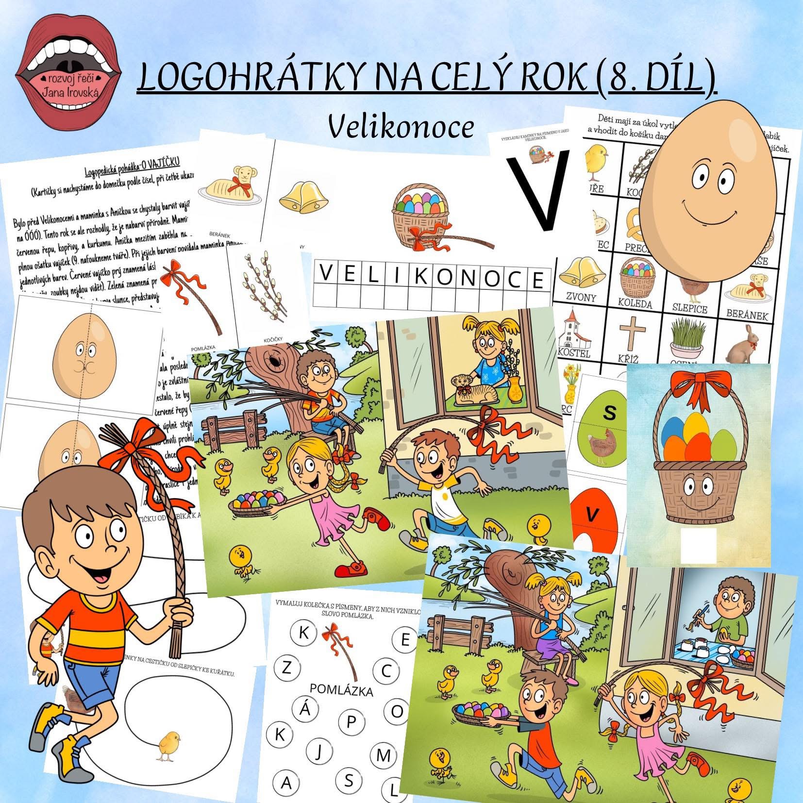 Logohrátky na celý rok provází děti Anička s Kubíkem a jejich příběhy, které jsou každý měsíc tematicky zaměřené podle ročního období. Soubor obsahuje příběh O VAJÍČKU s oromotorickými cviky, dechové cvičení, omalovánky, slabikování, skládací obrázky, kolíčkování, skládání slov, kamínkové cestičky atd.