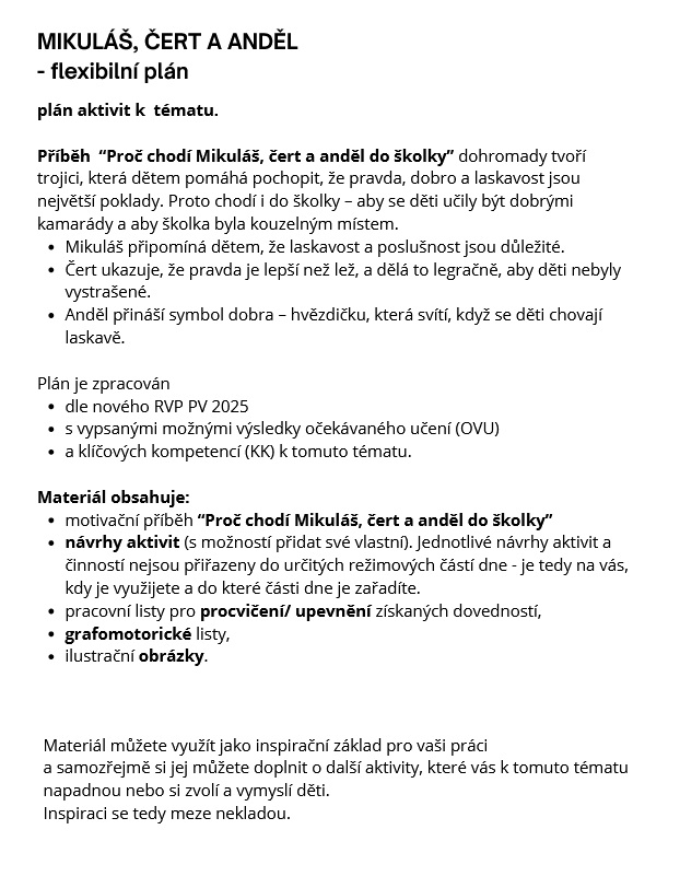 Mikuláš, čert, anděl - flexibilní plán aktivit k tématu.
