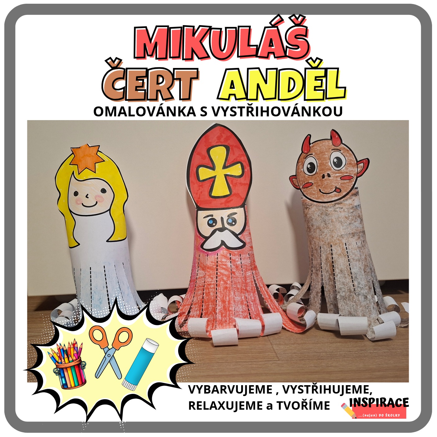 Mikuláš, čert, anděl - omalovánka s vystřihovánkou