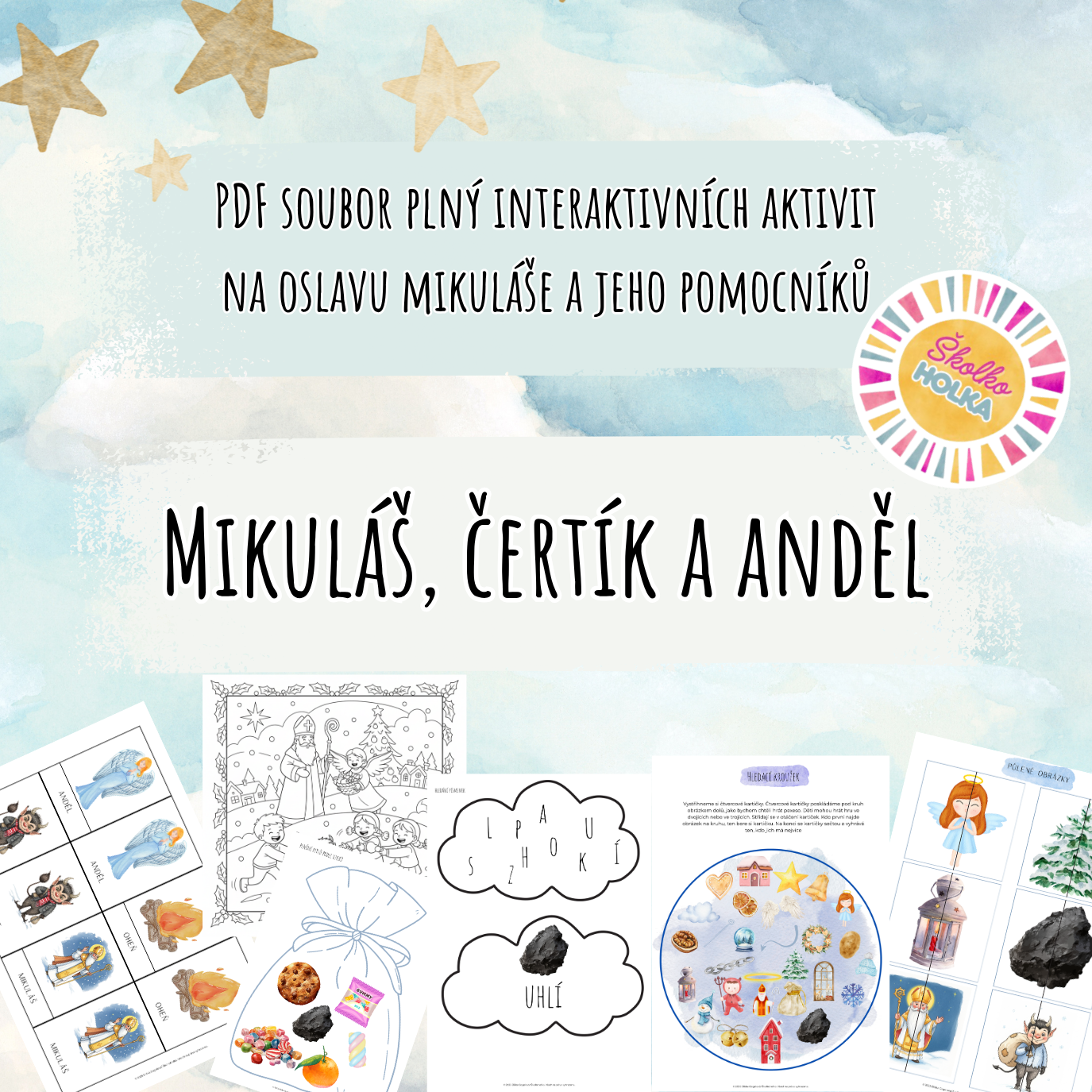 představuji vám komplexní PDF soubor "Mikuláš, čertík a anděl" , který přinese kouzelnou a vzdělávací atmosféru Mikulášské nadílky do vaší třídy! Tento balíček je plný rozmanitých a interaktivních materiálů určených pro rozvoj klíčových dovedností vašich dětí.