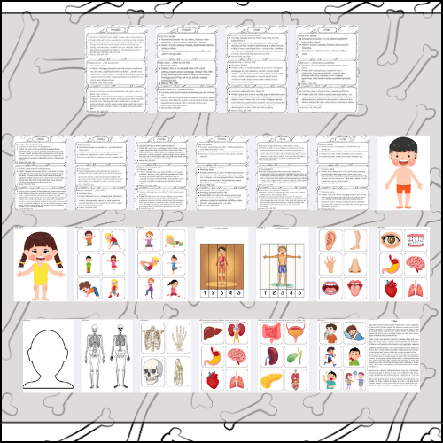 Řízené činnosti – didaktické, badatelské a tvořivé aktivity zaměřené na lidské tělo, kostru a orgány, přiřazování činností k orgánům, výrobky shrnující celé téma.