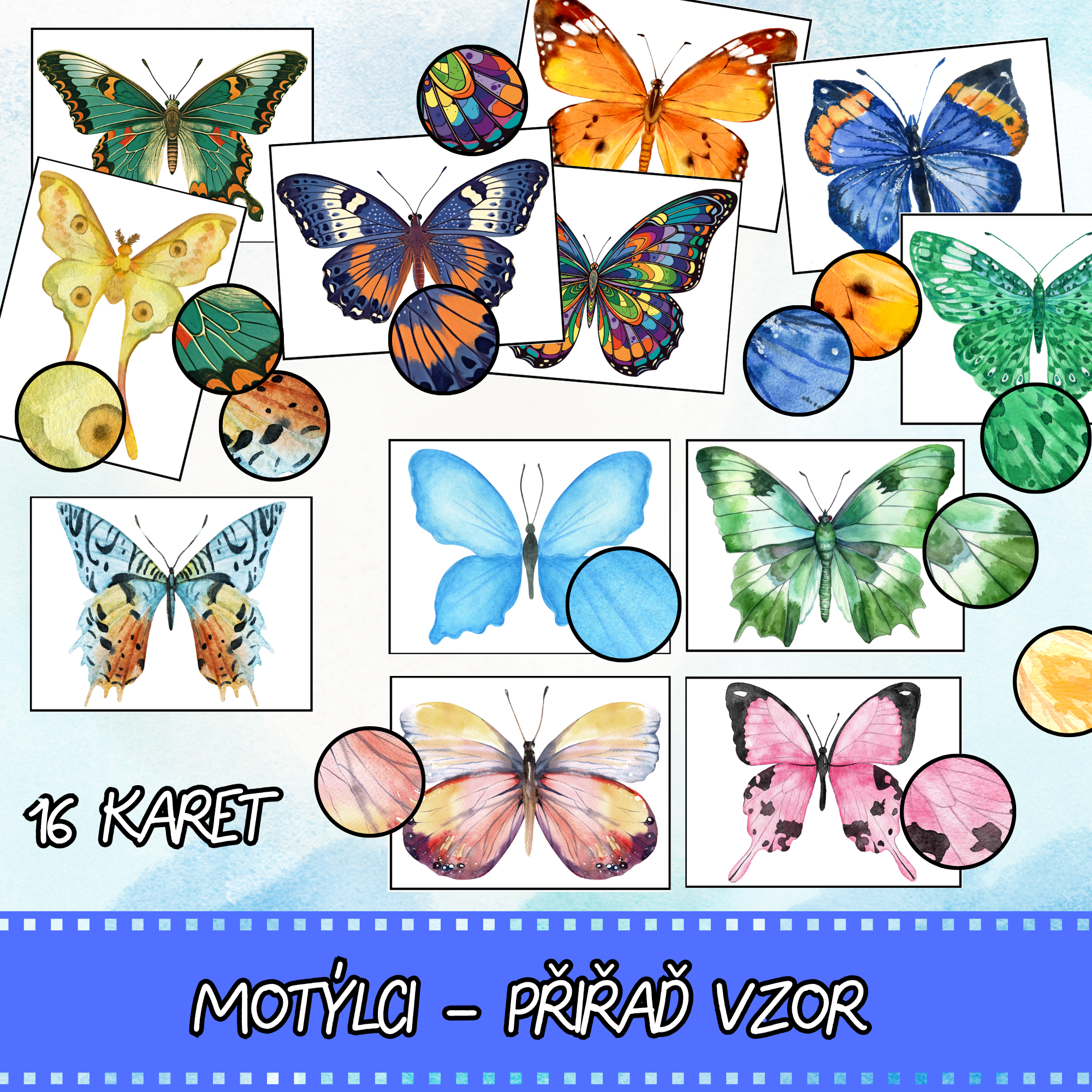 Motýlci - přiřaď vzor je zábavná didaktická aktivita, při které děti rozvíjí schopnost všímat si detailů, přiřazovat stejné vzory k sobě a taky jemnou motoriku.
