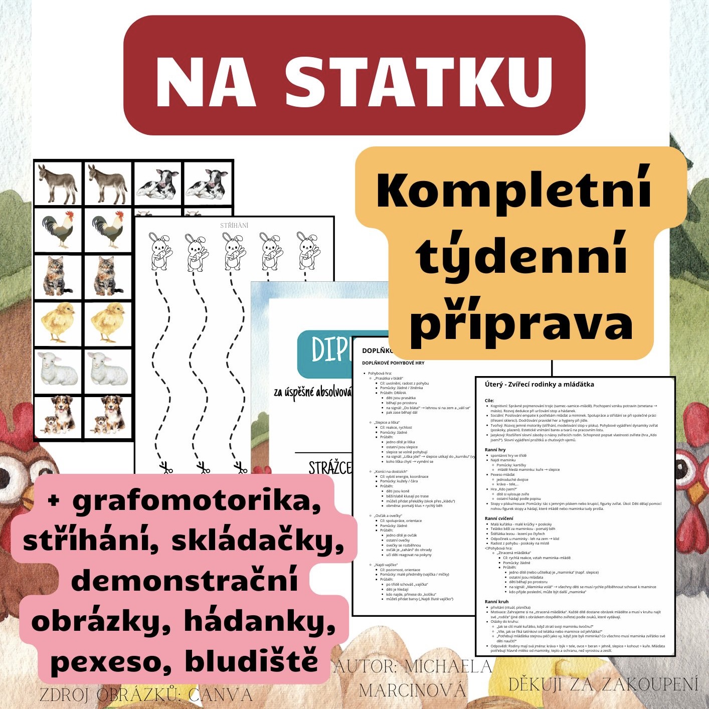 Hledáte propracovaný, hravý a metodicky podložený plán na téma domácích zvířat? Tento materiál vás provede celým týdnem od ranního přivítání až po pobyt venku. Žádné nudné vyplňování papírů – děti budou vyrábět vlastní máslo, stopovat zvířátka v písku a v pátek se stanou hrdými „Strážci statku“!