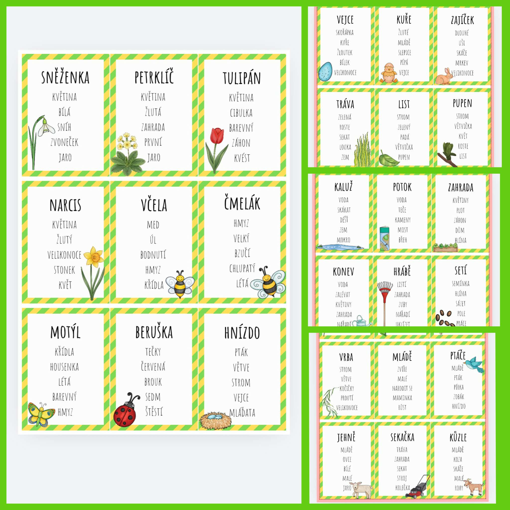 Kartičky doporučujeme pro delší životnost zalaminovat. Lze je využívat opakovaně, obměňovat pravidla hry nebo je zařazovat do tematických bloků během jarního období.