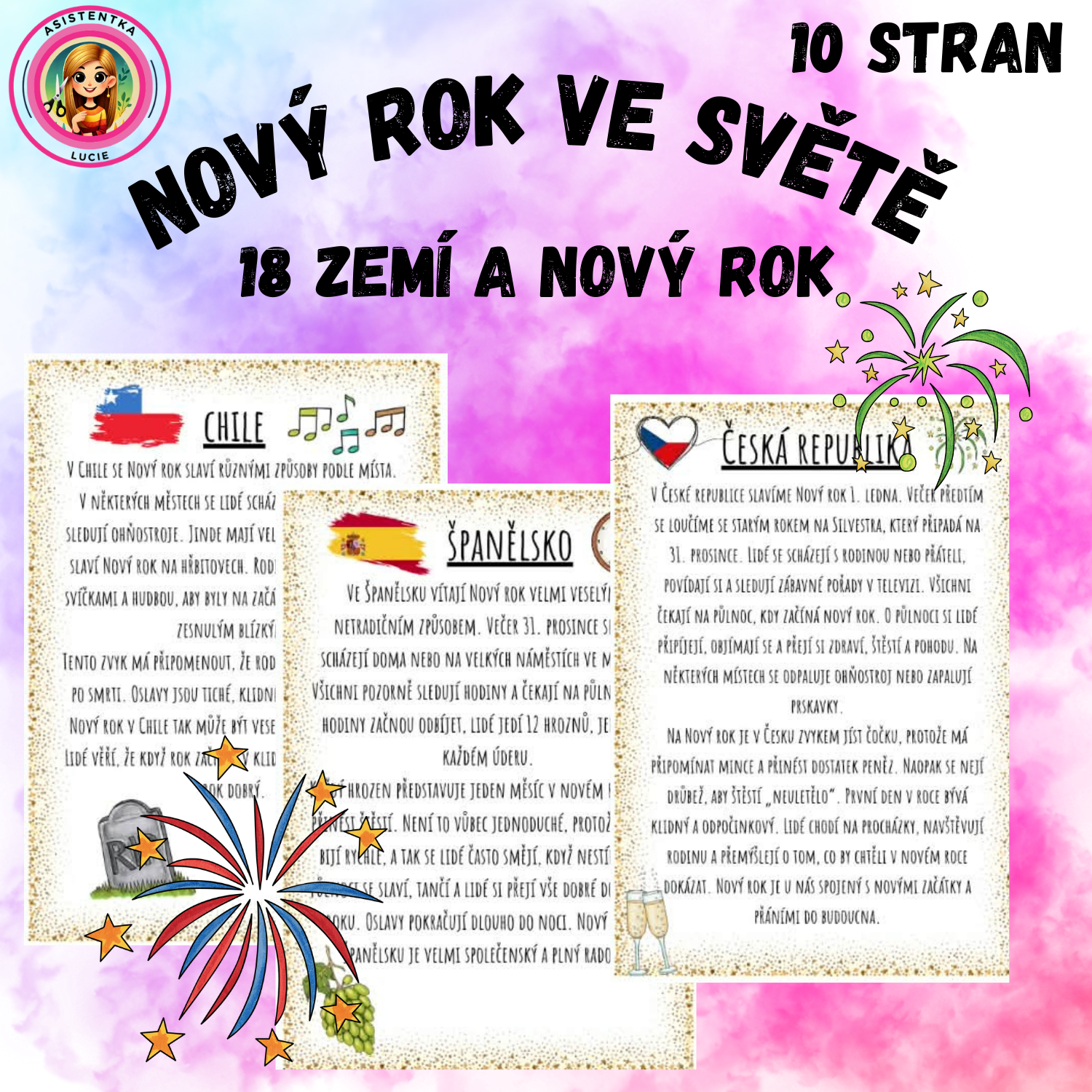 Materiál „Nový rok ve světě“ představuje soubor 18 zemí z různých částí světa, ve kterých se Nový rok slaví rozdílnými způsoby. Každá karta obsahuje pravdivé, ověřené a srozumitelně napsané informace, které jsou přizpůsobené dětem 1.–5. ročníku ZŠ. Texty jsou koncipované jako krátké čtecí pasáže, které děti zvládnou samostatně nebo při společném čtení ve třídě.