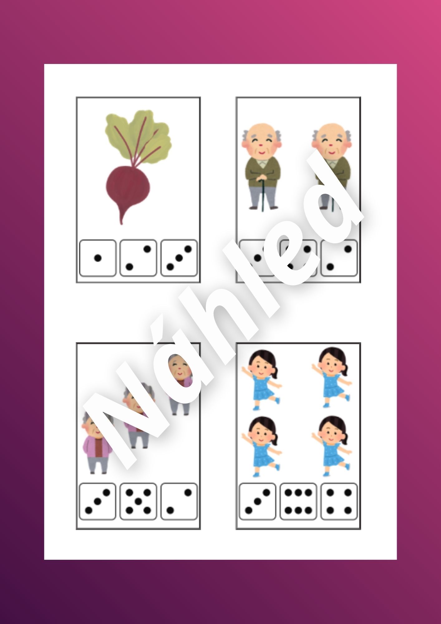 Soubor nabízí pestré hravé aktivity, které podporují rozvoj zrakového vnímání, pozornosti, logického myšlení, jemné motoriky, předmatematických dovedností a spolupráce dětí.