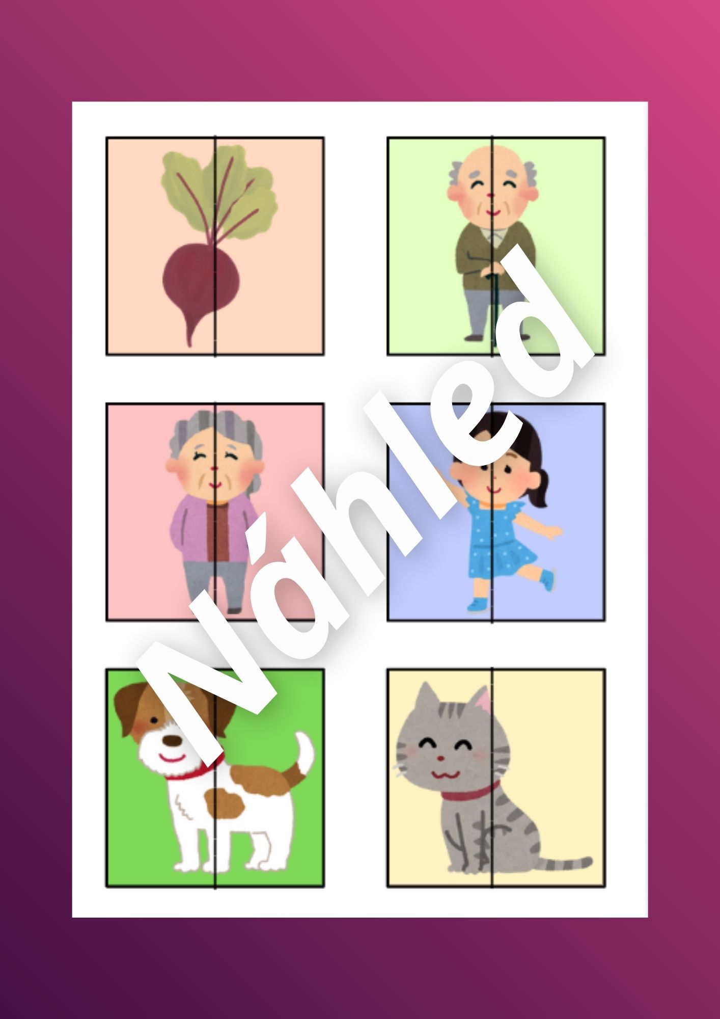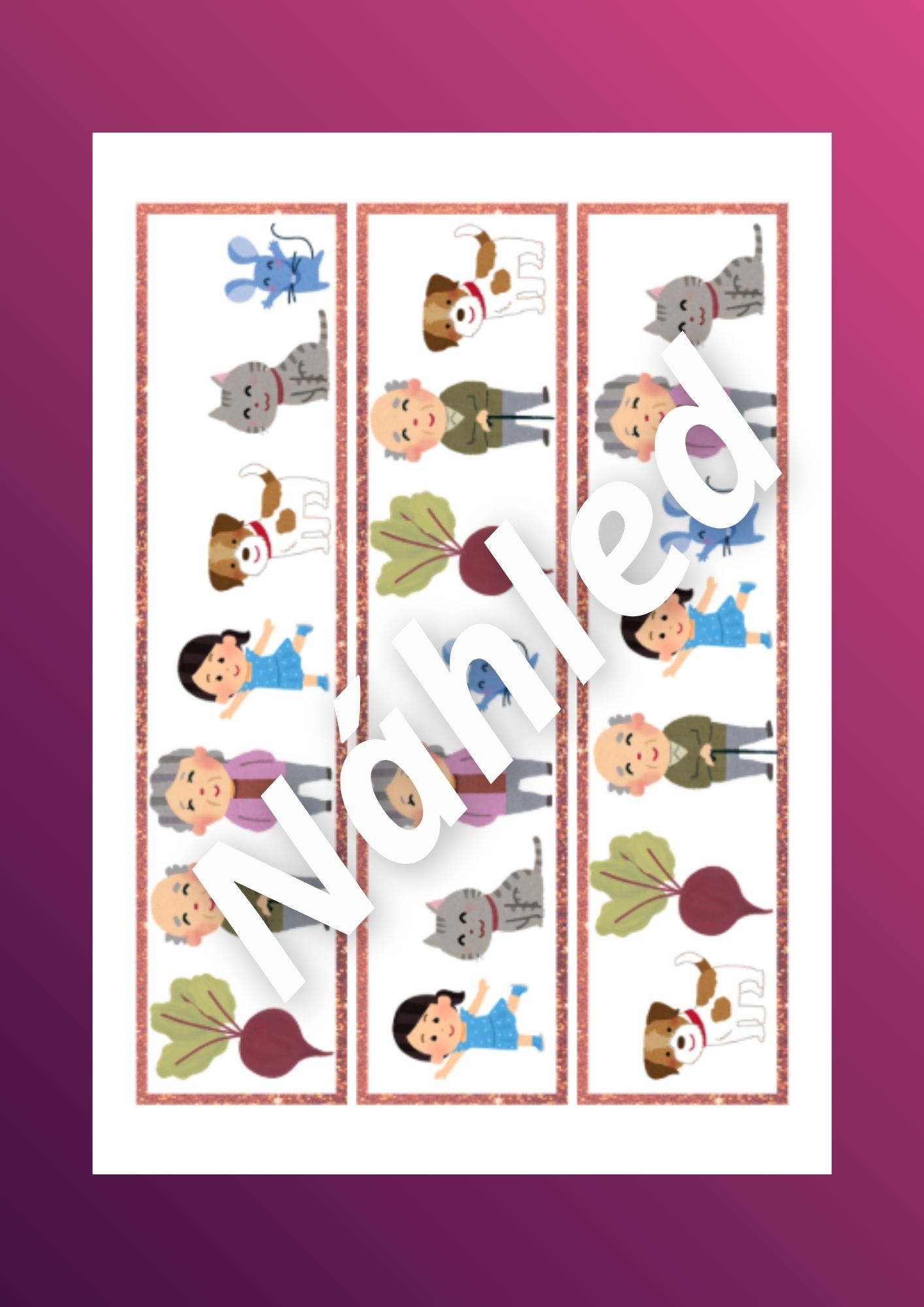 - Kartičky postav - děti si kartičky prohlížejí a pojmenovávají
