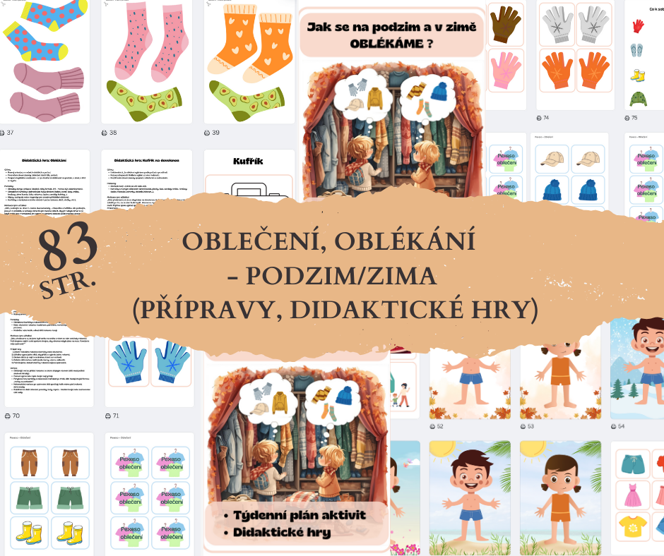 Hledáte pestrý a zábavný program, který dětem hravou formou přiblíží téma oblékání, ročních období a zimního počasí? Tento kompletní soubor na 83 stranách je připraven přesně pro Vás.