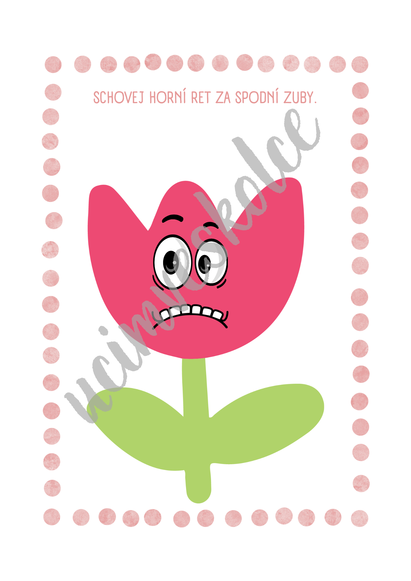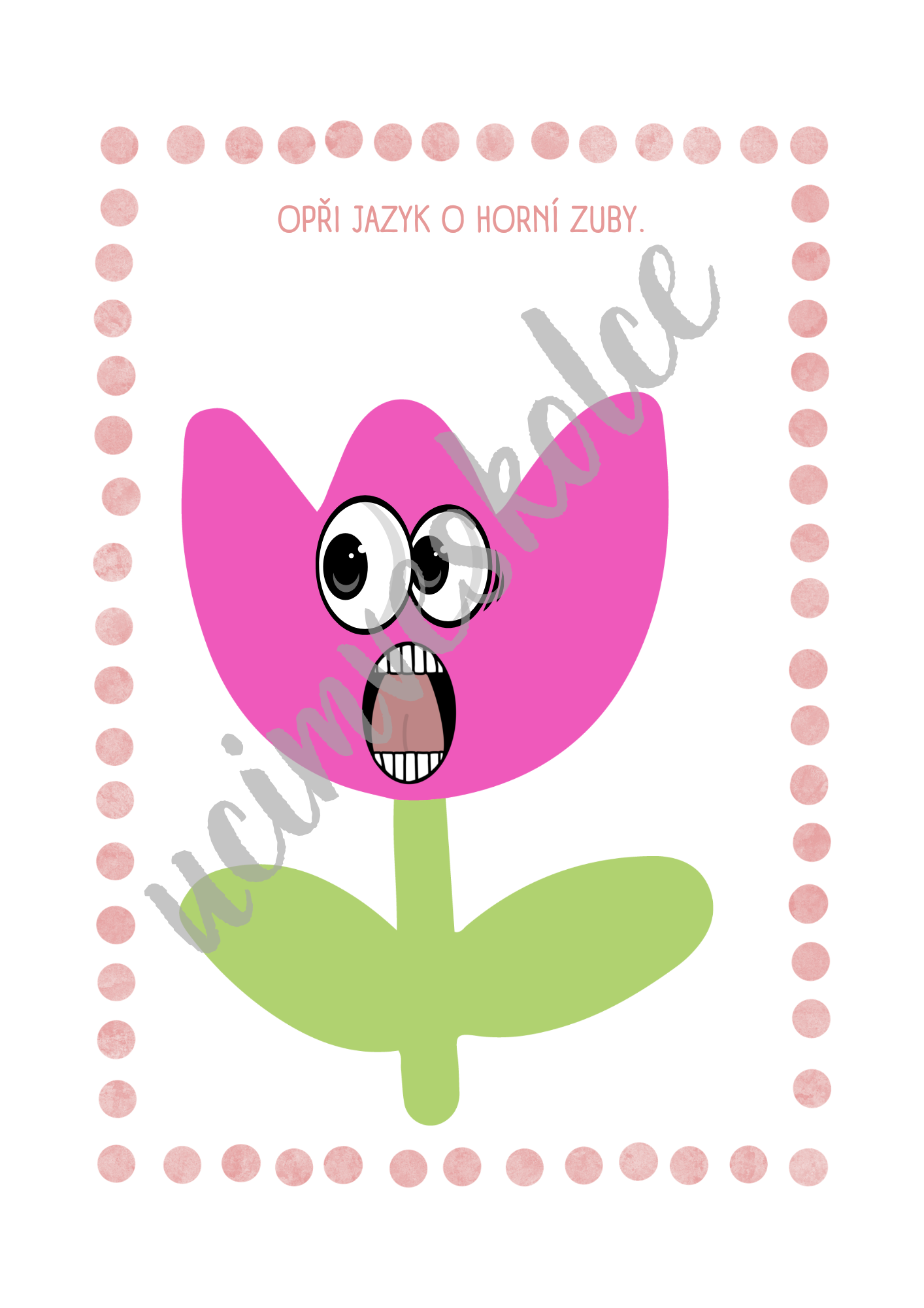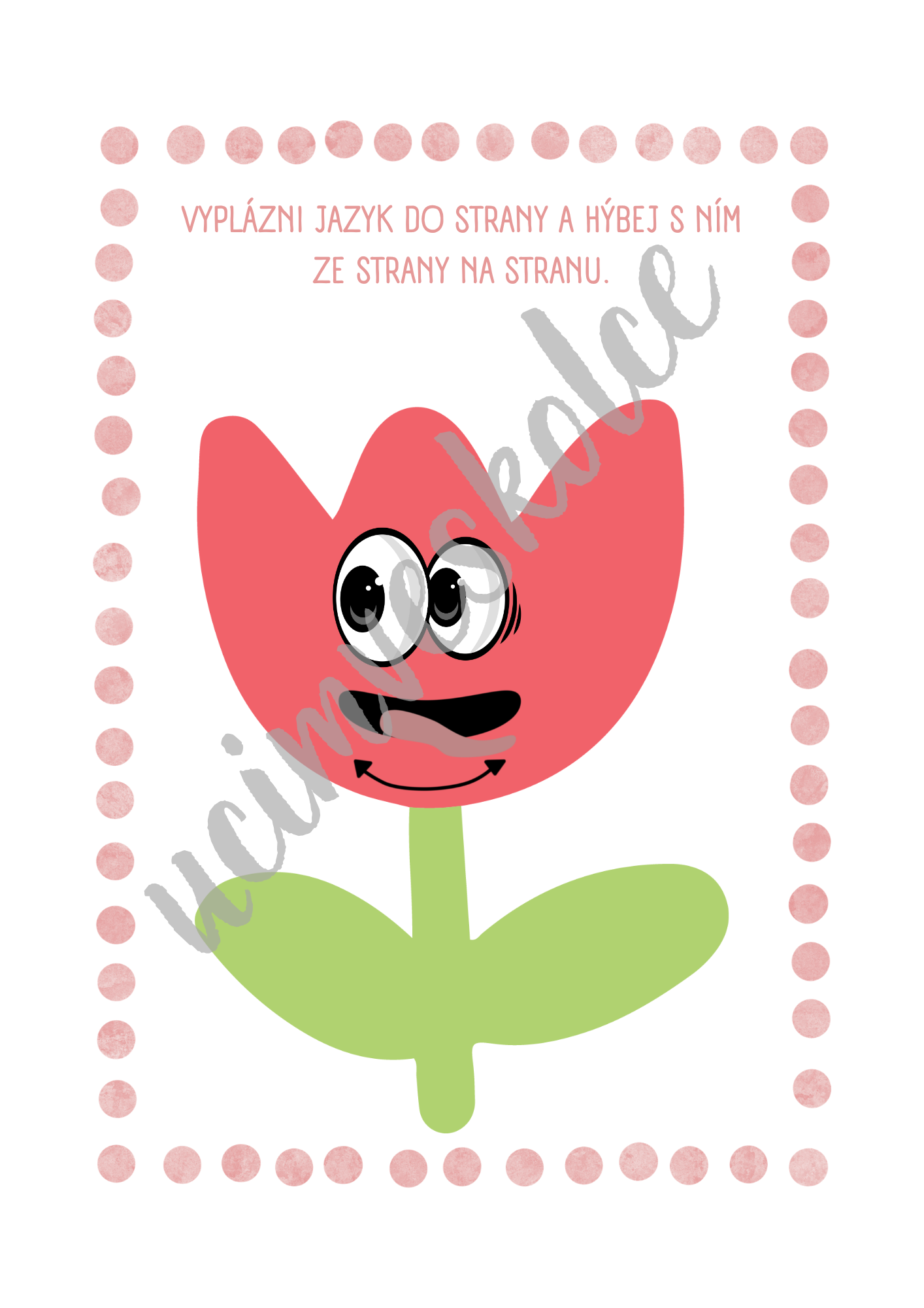 Na každé kartě je nakreslené konkrétní oromotorické cvičení i s popiskem.