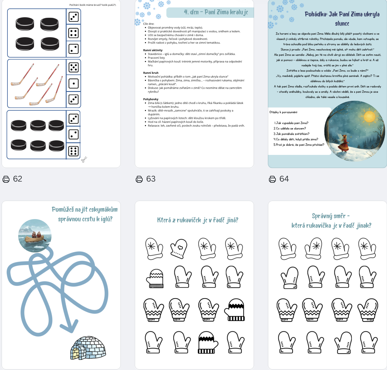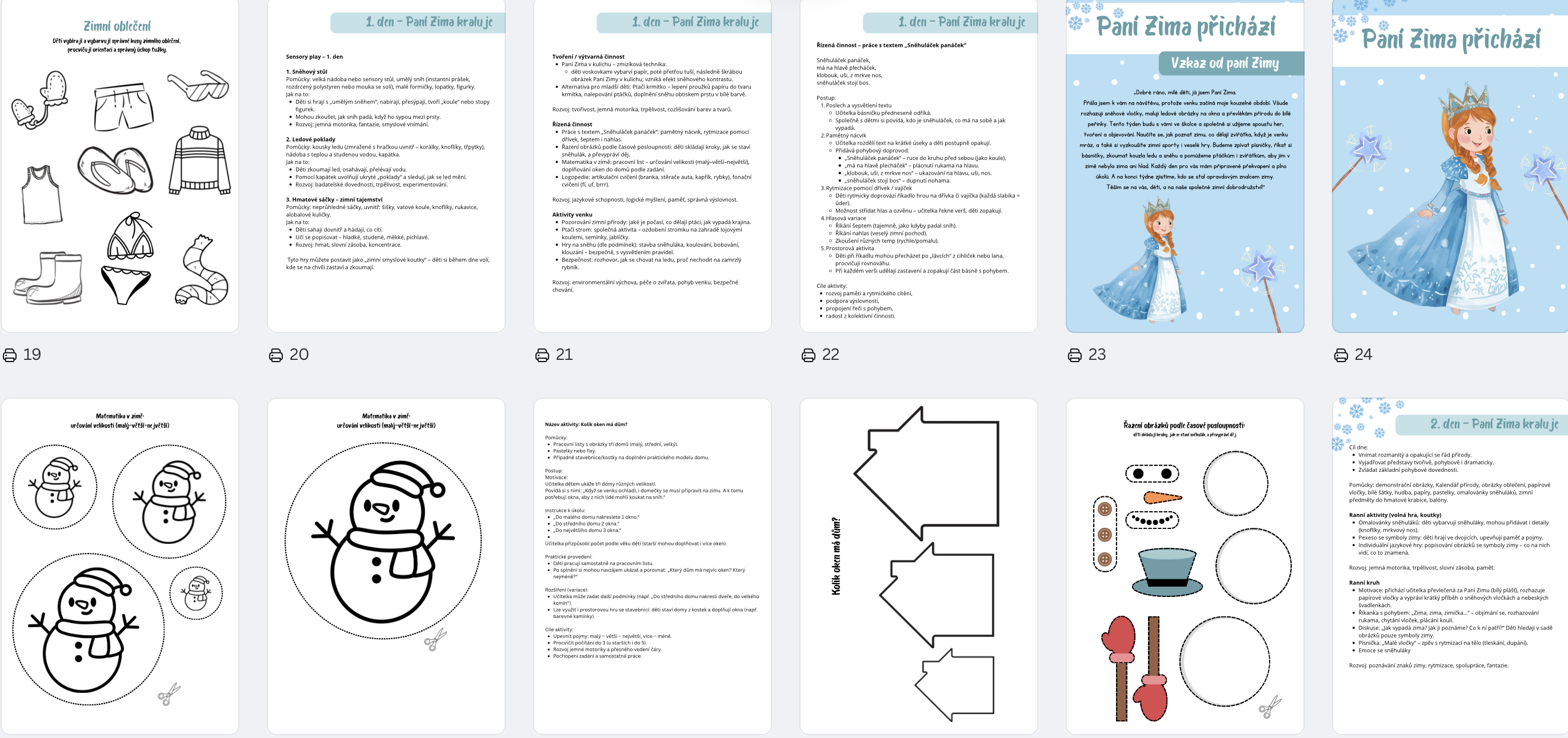 Soubor „Paní Zima přichází“ Vám usnadní plánování a přinese do zimního období ve školce spoustu radosti, tvořivosti a kouzelných chvil.