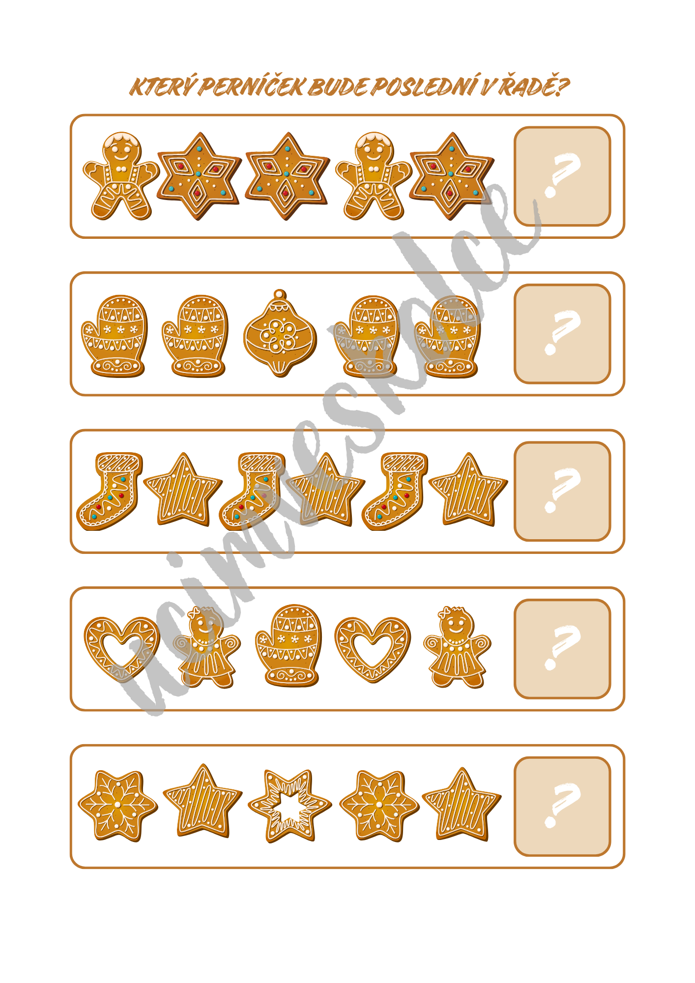 - Perníčkové sudoku (10 tabulek + 70 kartiček) - logické myšlení, zrakové vnímání, schopnost soustředění, postřeh, jemná motorika ruky