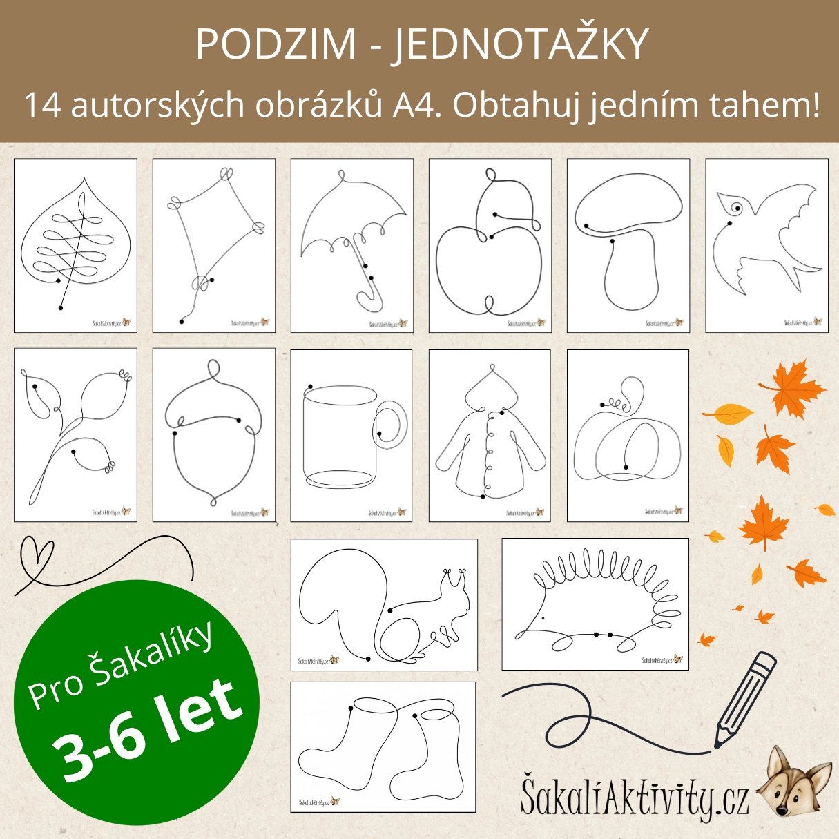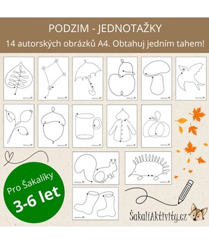 Objevte zábavné grafomotorické listy s podzimními motivy, které pomáhají dětem rozvíjet jemnou motoriku, koordinaci oka a ruky i správný úchop tužky. Úkolem je obkreslit každý obrázek jedním tahem, bez zvednutí tužky z papíru – ideální aktivita pro předškoláky i školkáčky.
