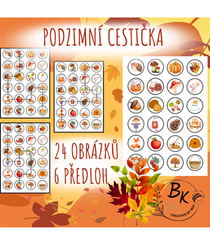 Soubor obsahuje 24 velkých podzimních obrázků, 6 karet s vyznačenými cestičkami a jednu kartu pro vlastní cestičku.