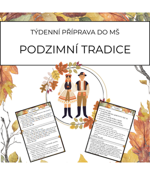 🍂 Podzim je plný zvyků a tradic, které lidé slaví už po mnoho generací. Pouštění draků, dožínky a hody, Dušičky, svatý Martin i začátek adventu – každý den přináší jiný příběh, symboly a radosti. Tento digitální materiál „Podzimní tradice“ vám nabídne ucelený program na celý týden, díky kterému děti hravou formou poznají pět významných podzimních tradic.