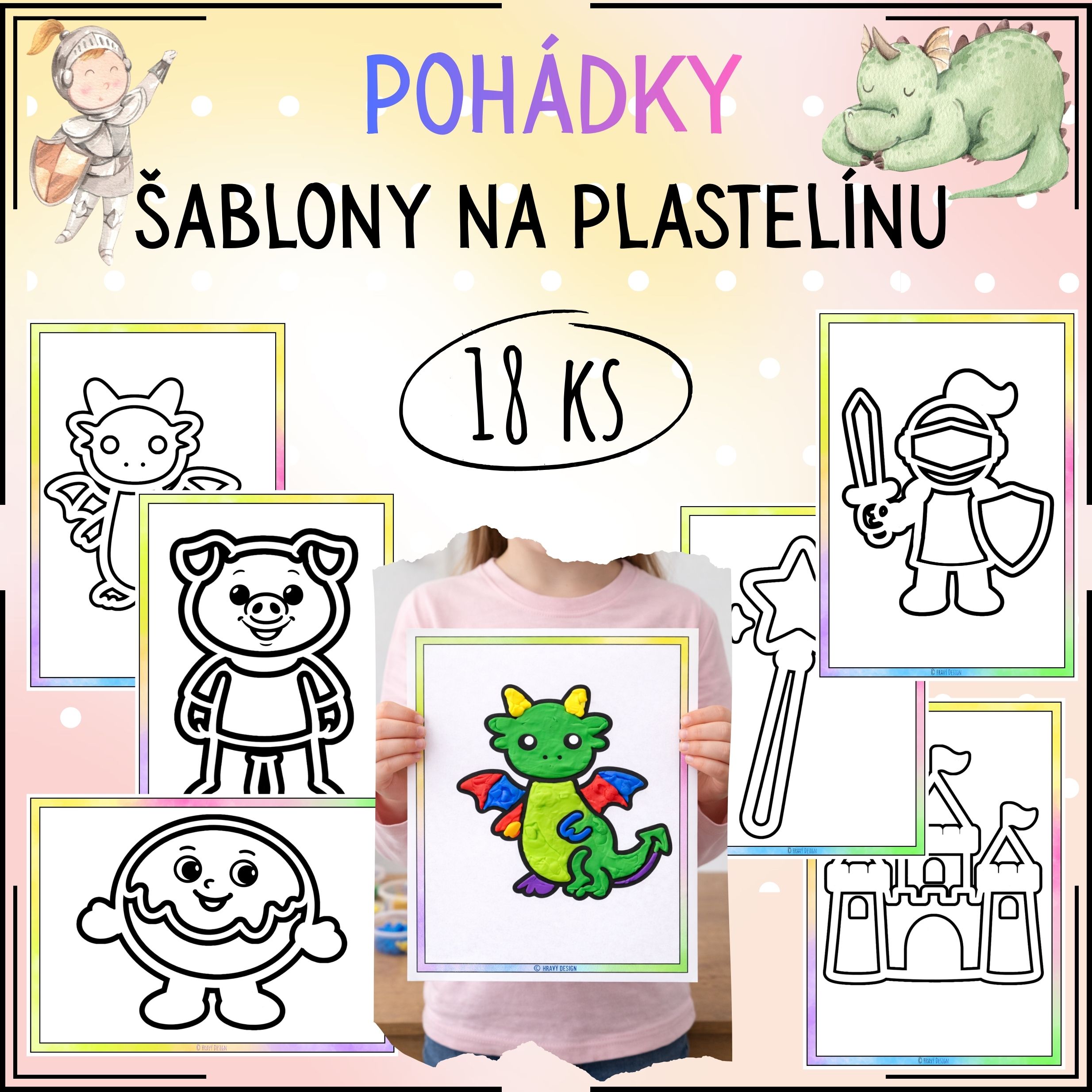 Soubor obsahuje 18 šablon na plastelínu ve formátu A4 s pohádkovými motivy.