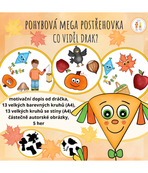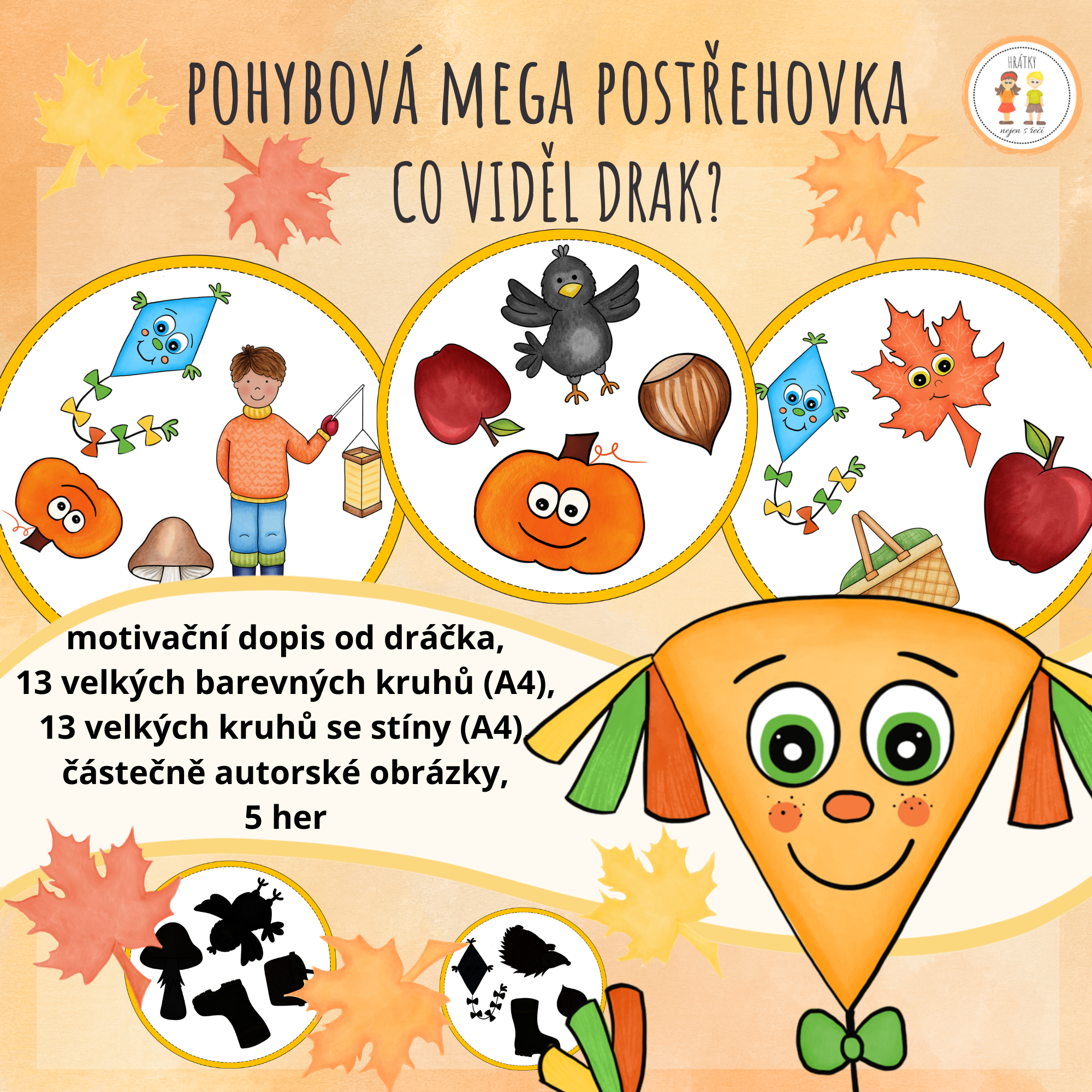 já jsem barevný podzimní drak, utrhl jsem se z provázku a vydal jsem se na dalekou cestu vzduchem. Letěl jsem vysoko i nízko, vítr mě nosil sem a tam a já jsem viděl spoustu zajímavých věcí. Po cestě jsem poznal nového kamaráda draka!