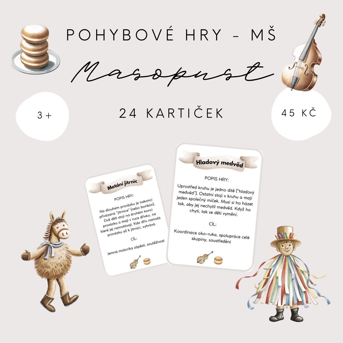 Představujeme Vám soubor 24 her vhodné do ranního kruhu na téma Masopust, které jsou určeny dětem především předškolního věku.