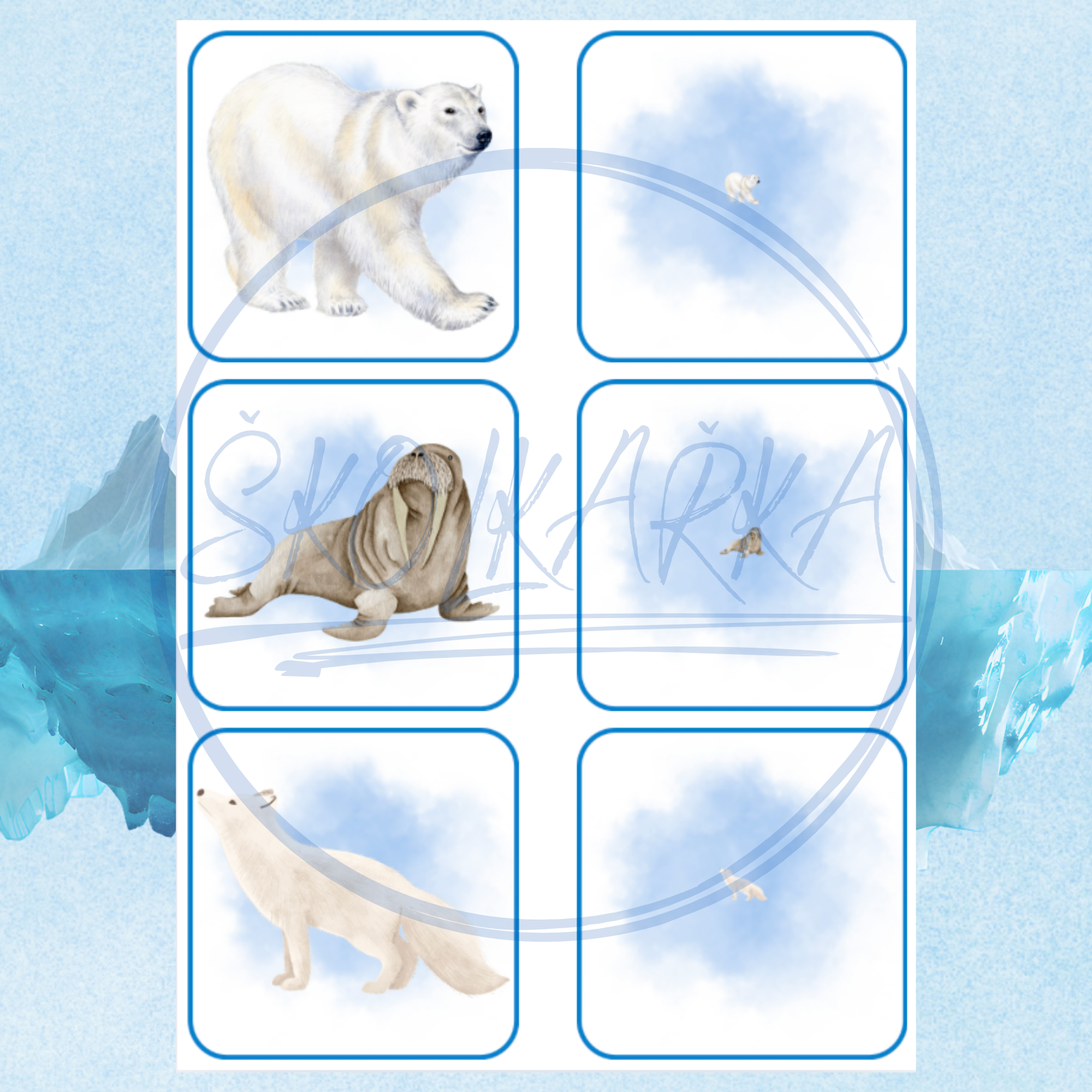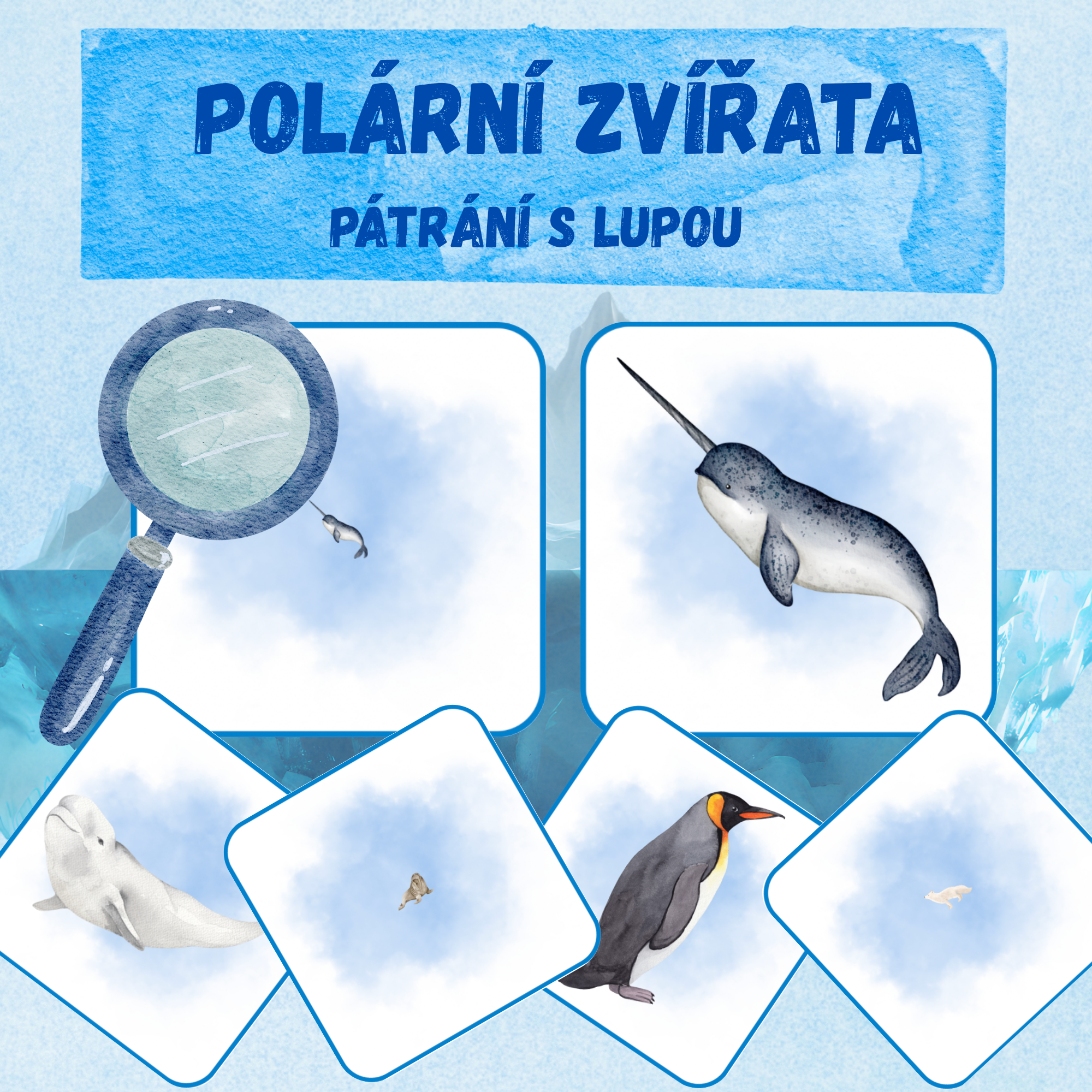 Tento didaktický materiál je určený ke hravému objevování detailů. Pomocí lupy děti pozorují malé miniatury zvířat, přičemž jejich úkolem je najít a přiřadit odpovídající velký obrázek se stejným tvarem a strukturou.