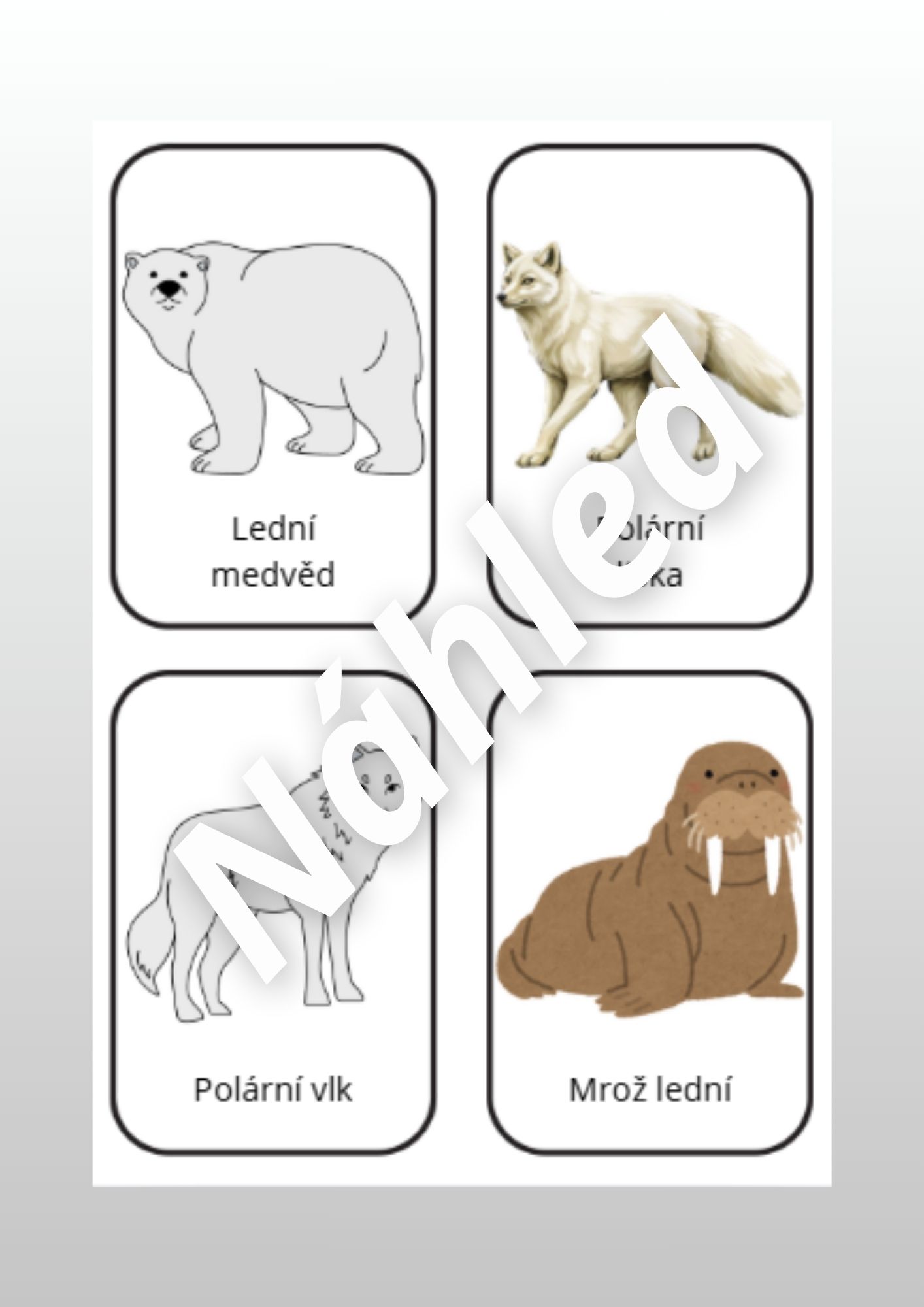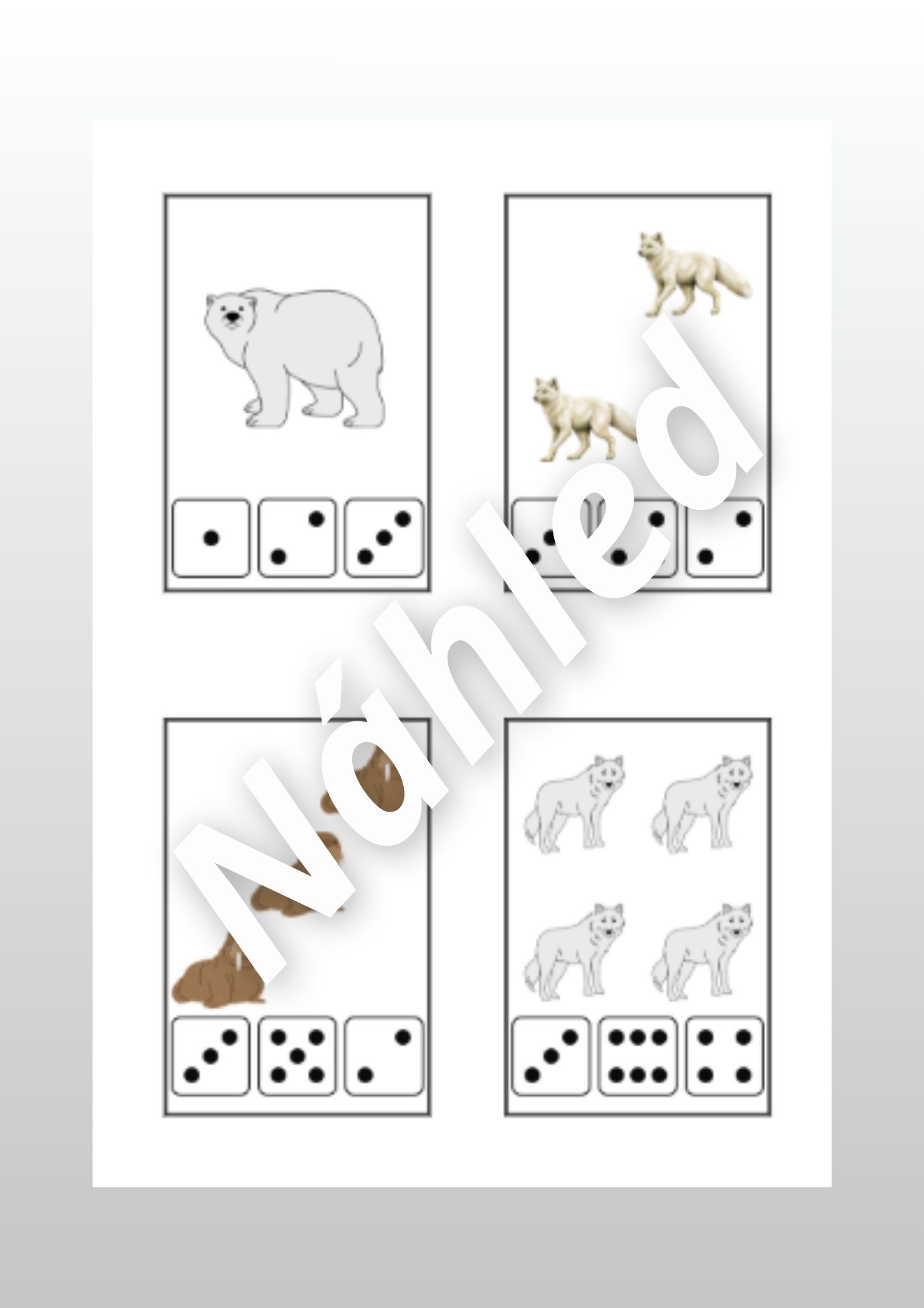 - Kartičky polárních zvířátek (str. 3-5) - děti si kartičky prohlížejí, pojmenovávají zvířata a mohou je třídit podle zadání