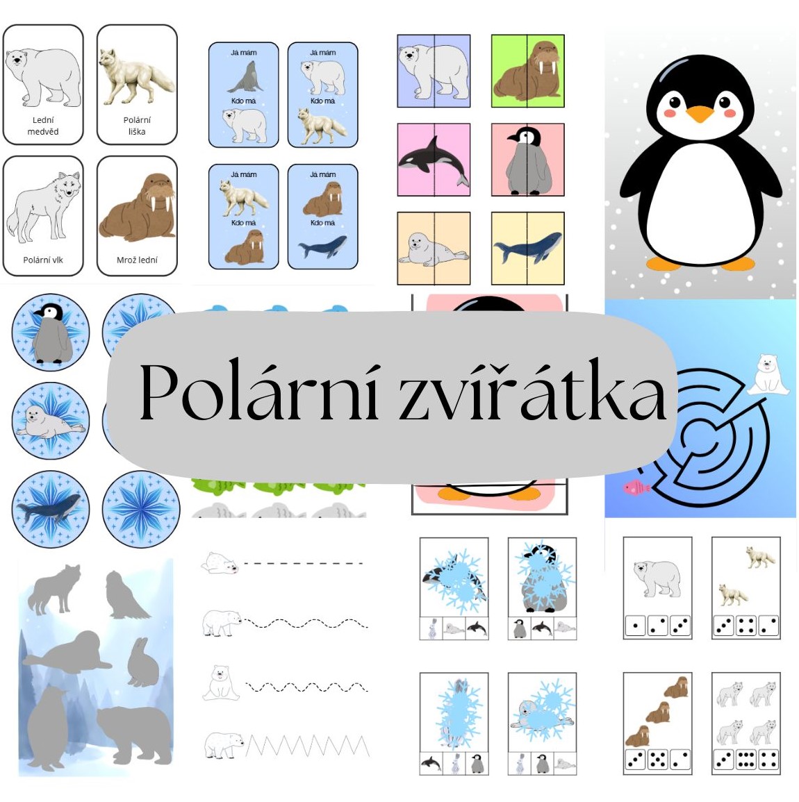 Tento vzdělávací soubor je zaměřen na polární zvířata. Soubor rozvíjí logické myšlení, zrakové vnímání, jemnou motoriku, předmatematické dovednosti i logické myšlení.