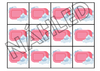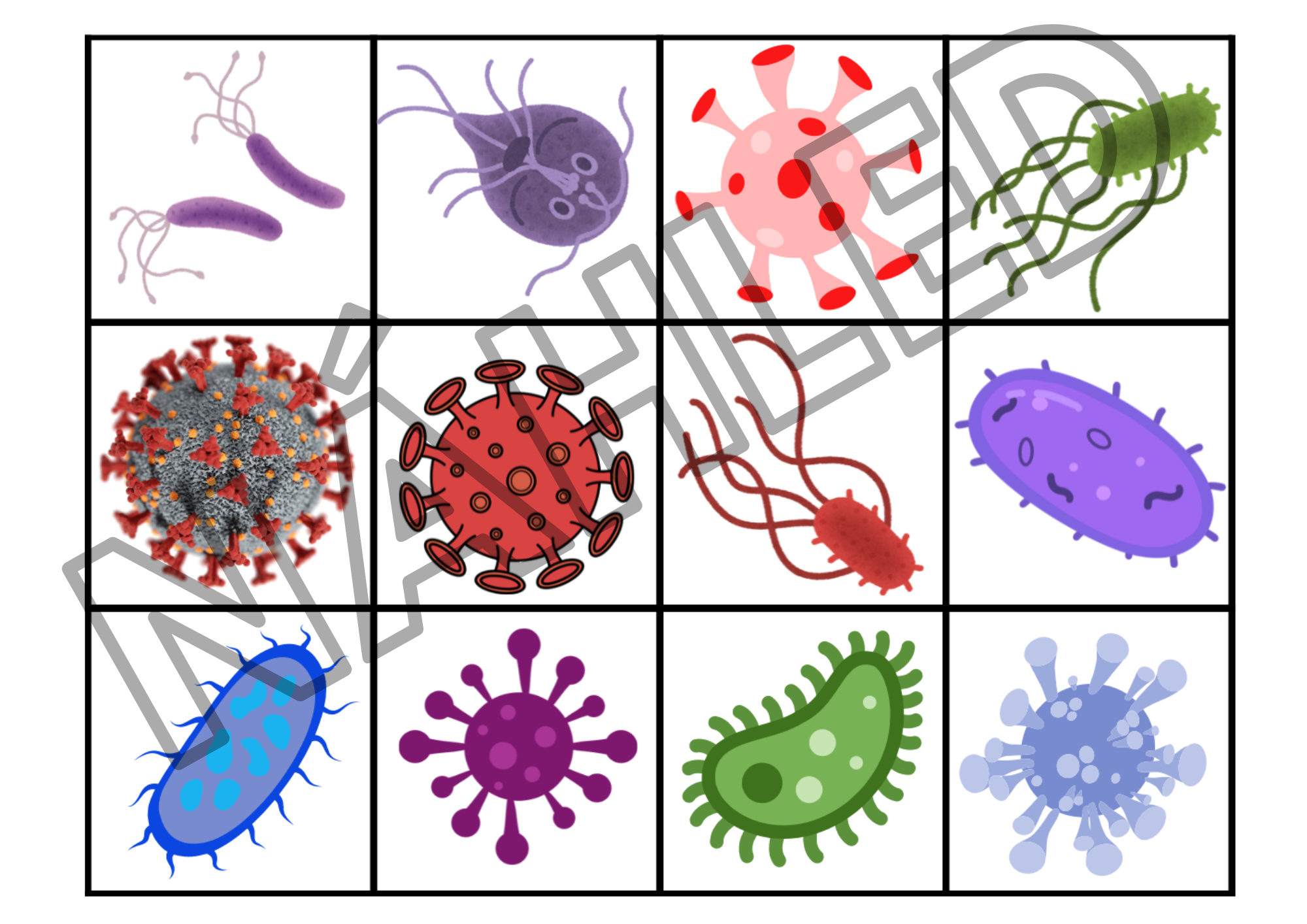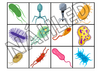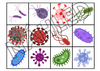 Soubor obsahuje: 4 karty A4 s obrázky dlaní s mikroorganismy - na každé kartě jsou jinak uspořádány. Dále 36 kartiček s obrázky mikroorganismů a 12 kartiček s oblázky mýdla.