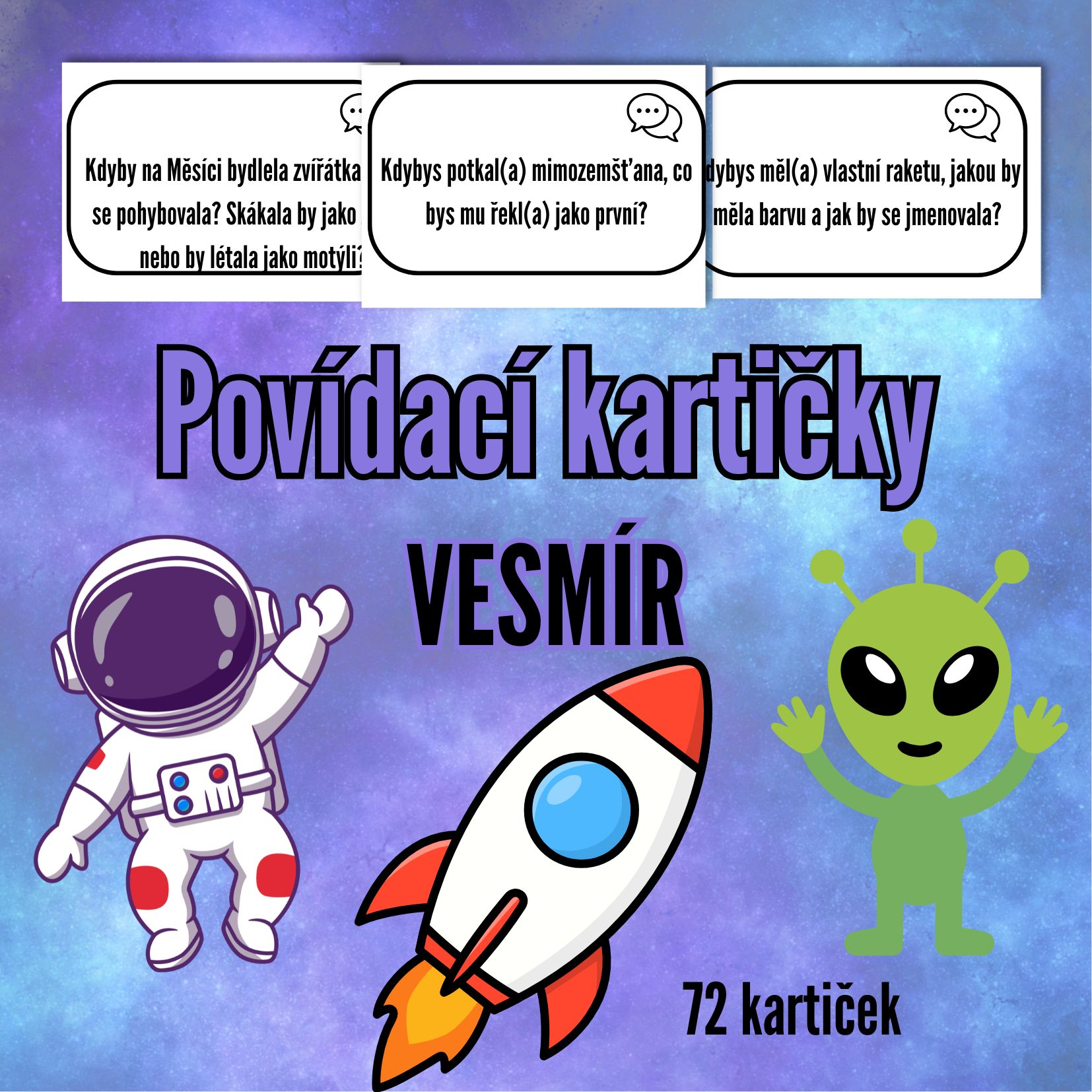 🚀 POVÍDACÍ KARTIČKY: Vesmír (Velká sada 72 otázek)