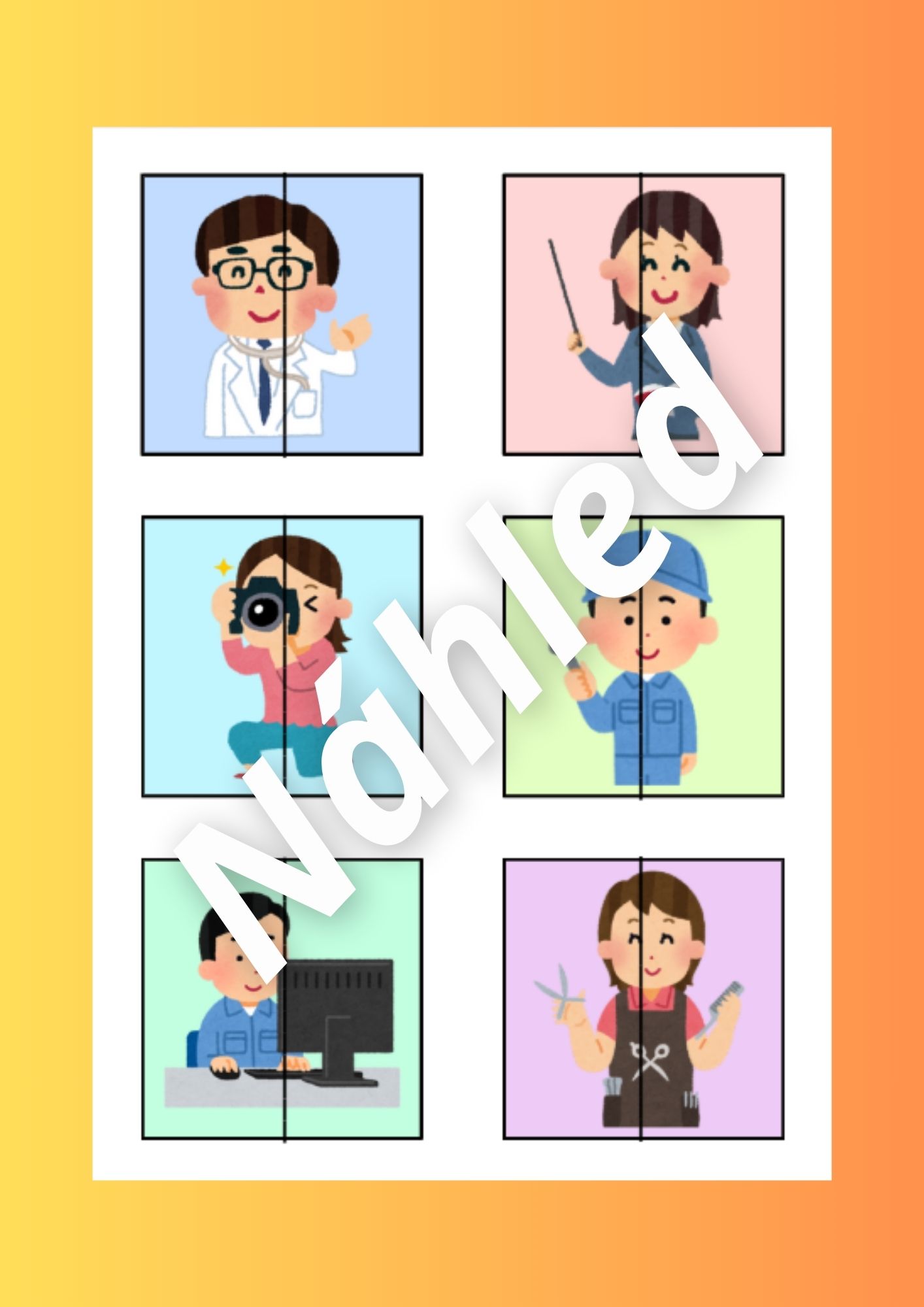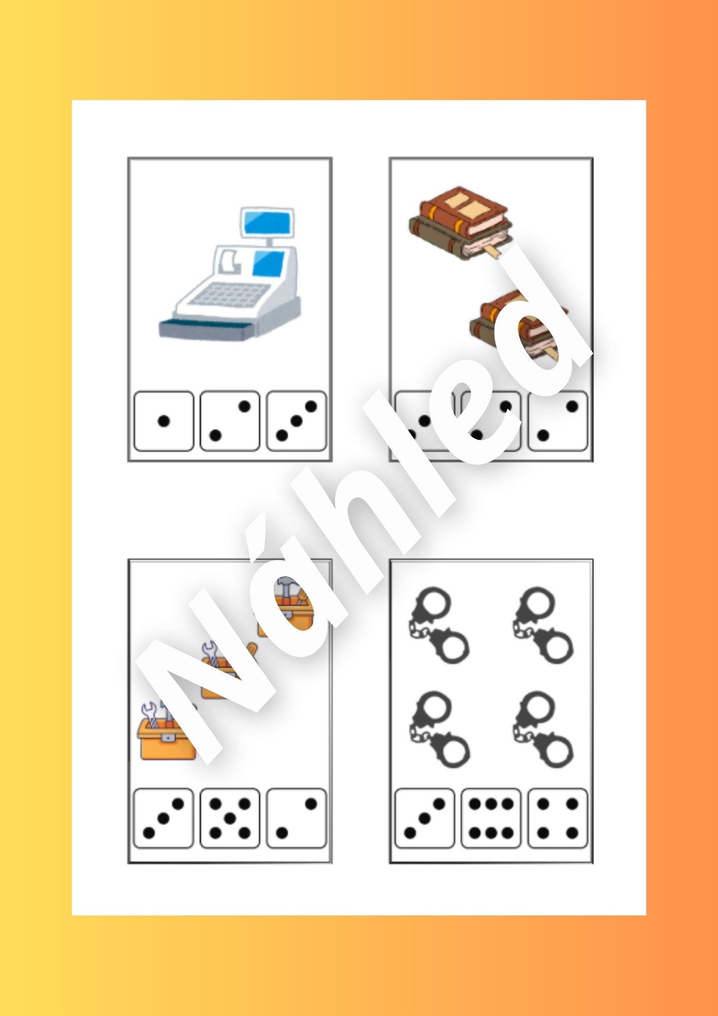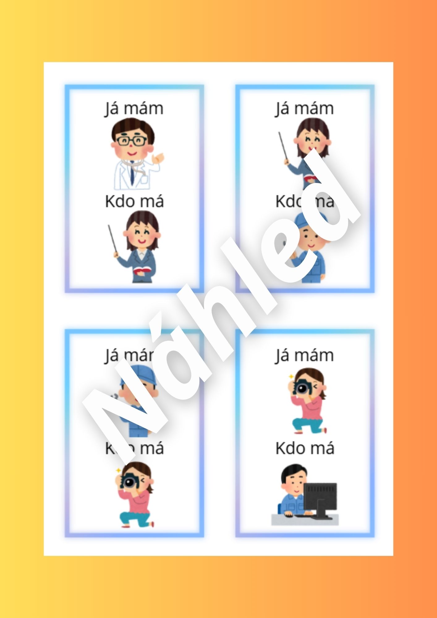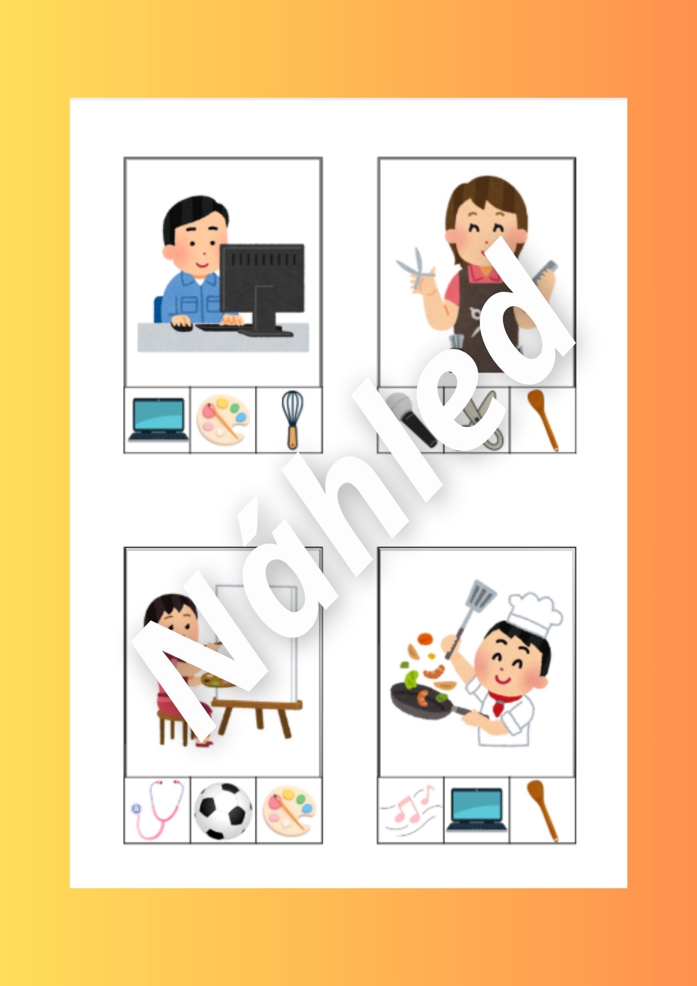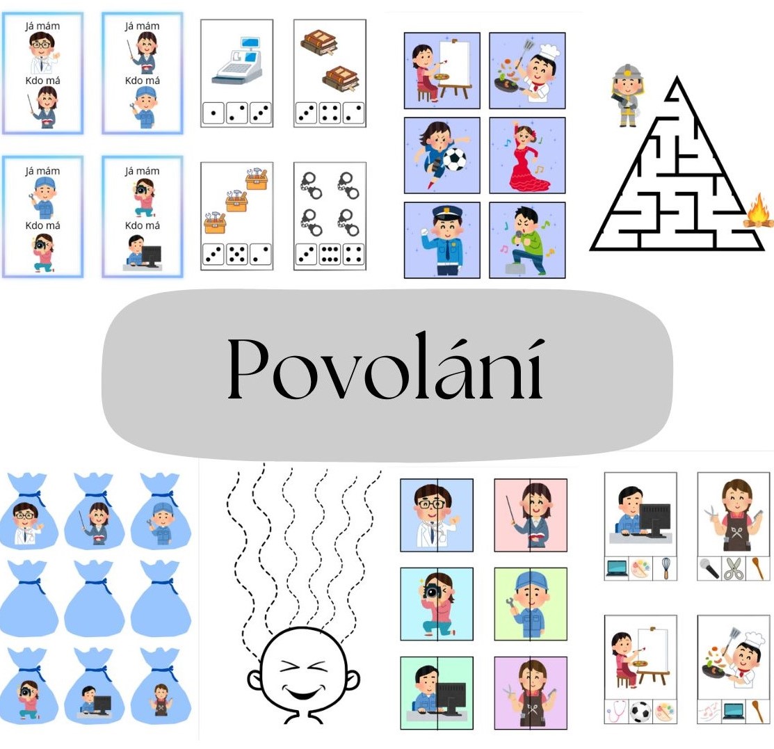 Tento vzdělávací materiál je zaměřen na poznávání povolání. Aktivity podporují rozvoj slovní zásoby, zrakového vnímání, logického myšlení, jemné motoriky i předmatematických dovedností.