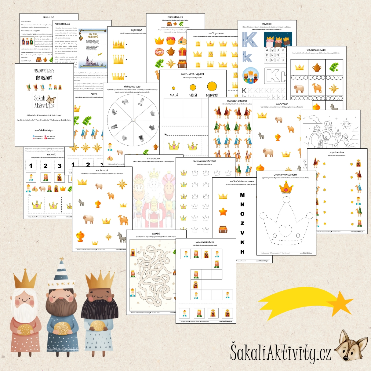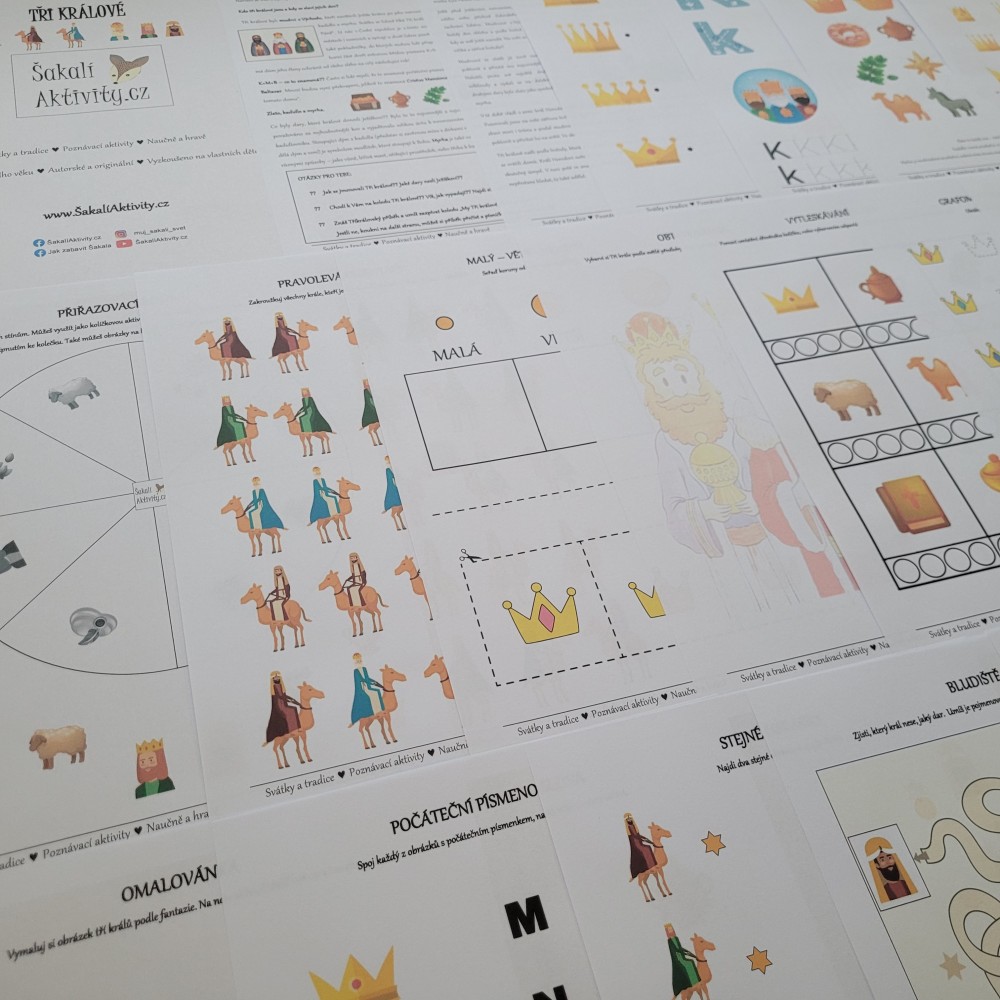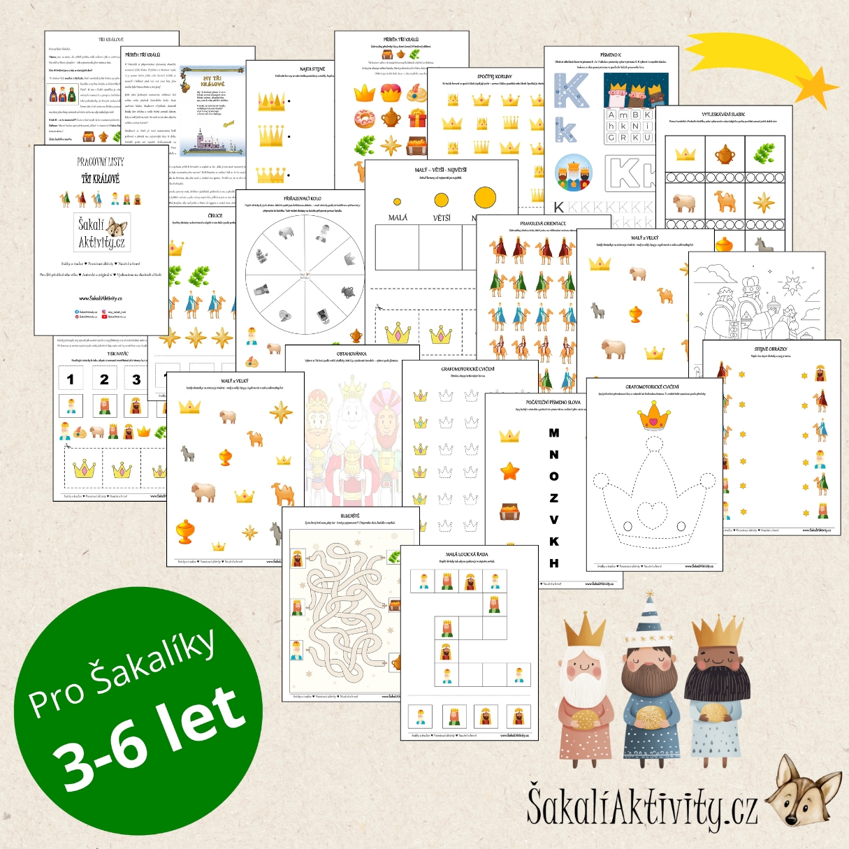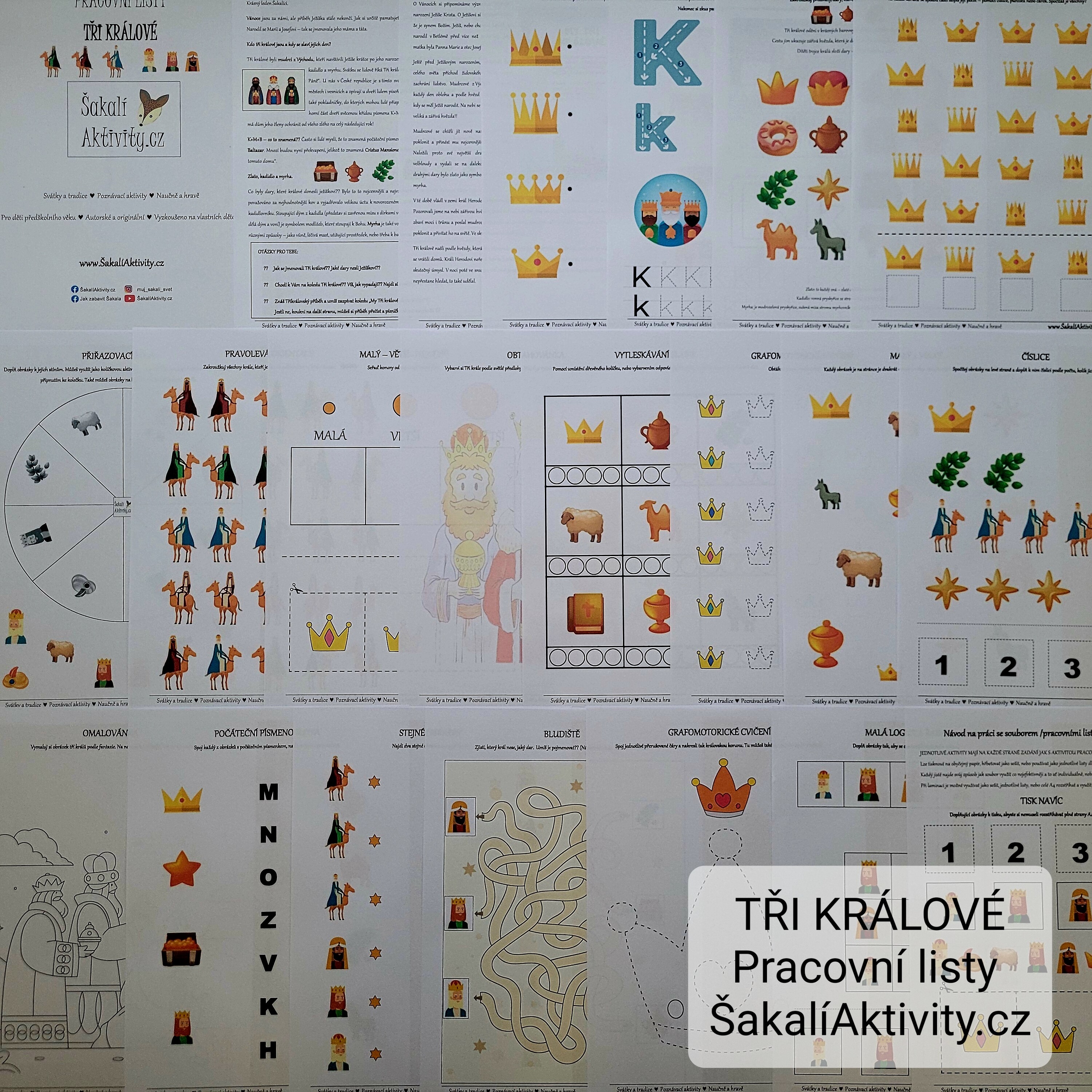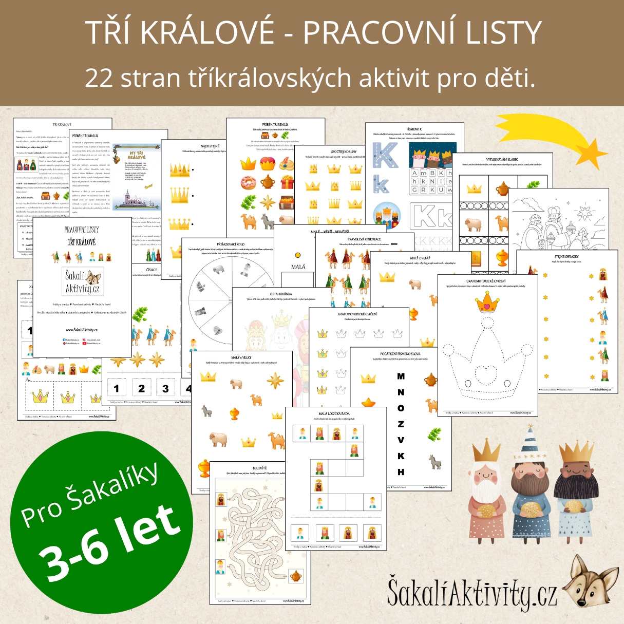 Listy začínají úvodem, kde Šakalíky seznamujeme se svátkem Tří králů a věnujeme se jak oslavě tohoto dne, tak jménům králů, jejich darům, a dalším věcem, které s nimi souvisí. Součástí je také list s tříkrálovským příběhem a slovy písně "My Tři králové jdeme k Vám".