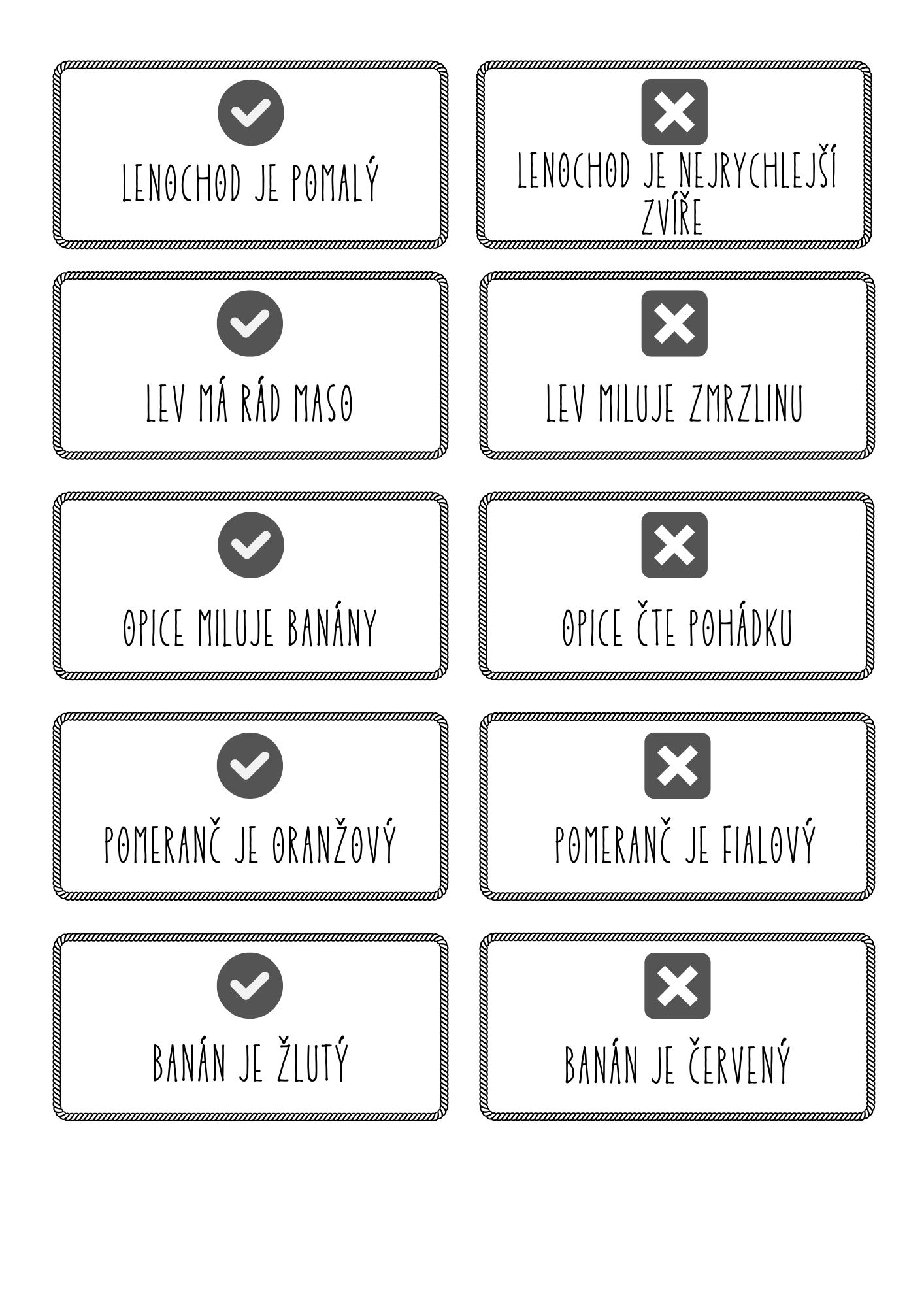 Novinka Kategorie produktu HÁDANKY, bludiště, labyrinty Prodávající: LenkaŠenkeříková Cena za ks: 39 Kč s DPH Popis Máte dotaz? Jednoduchá hra pro zkrácení dlouhých chvil, třeba když čekáte na oběd. Paní učitelka čte tvrzení na kartičkách a děti rozhodují, zda je to pravda nebo lež. Soubor obsahuje více než 130 kartiček v barevné i černobílé verzi. You must have JavaScript enabled to use this form. Vaše jméno Váš e-mail Předmět Zpráva Odesláním formuláře souhlasím se zpracováním osobních údajů