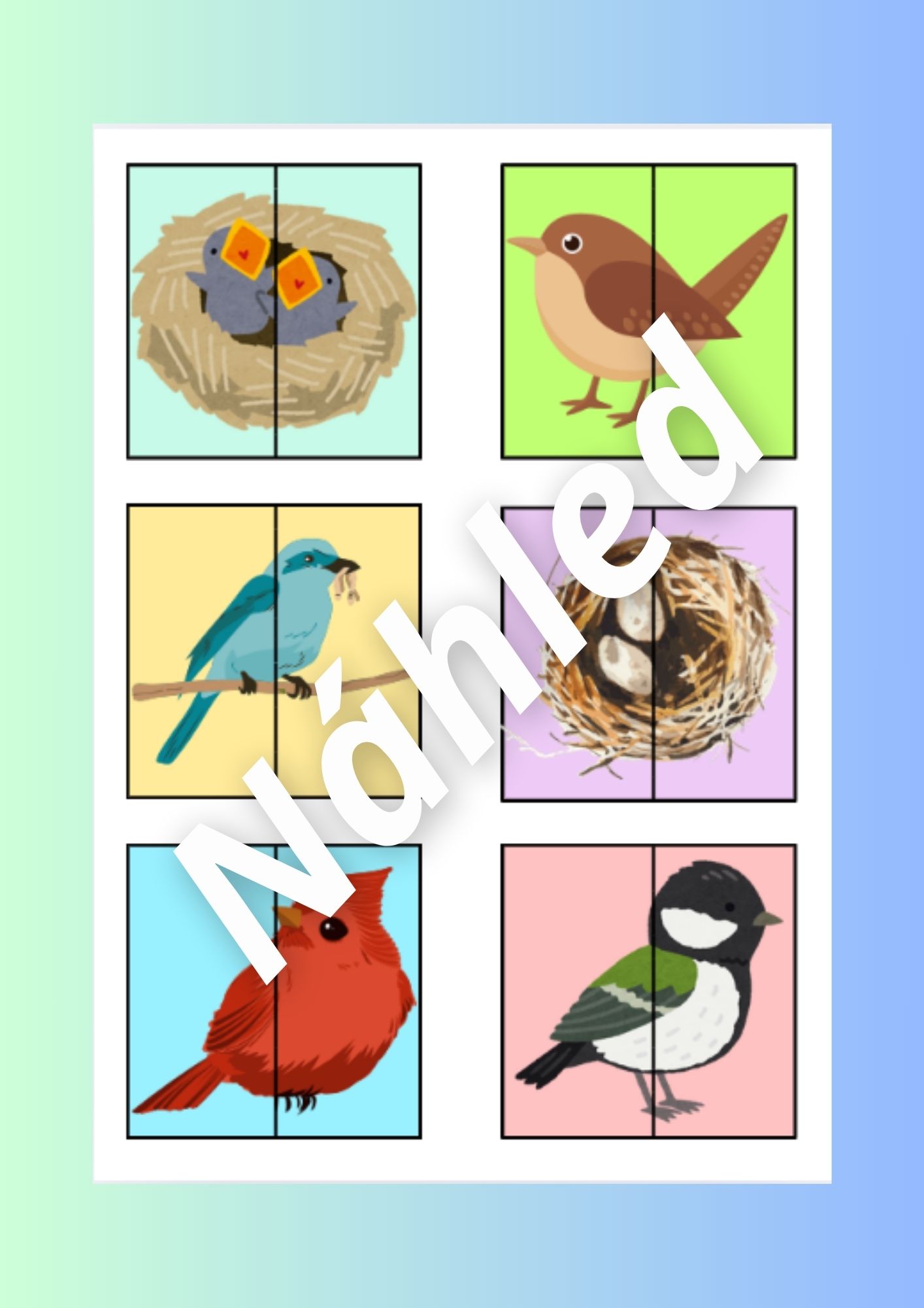 - Puzzle ptáčků - rozstříhej obrázek na dílky a znovu jej slož tak, aby vznikl správný obrázek