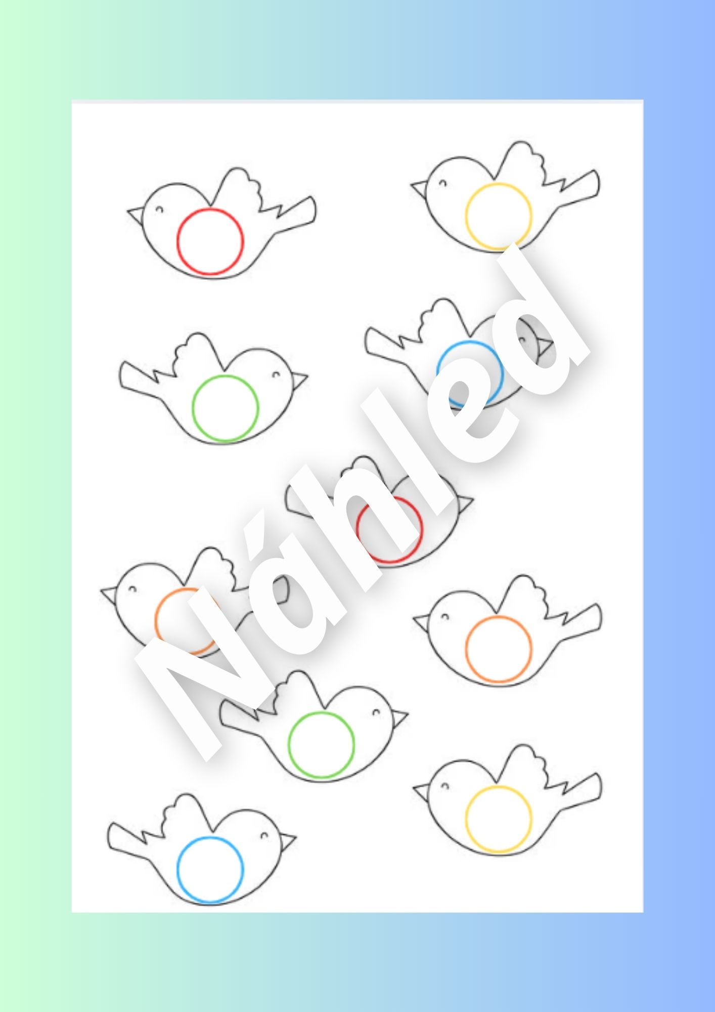 - Ptáčci s barevnými kruhy - přiřaď ptáčkům barevné kruhy podle zadání