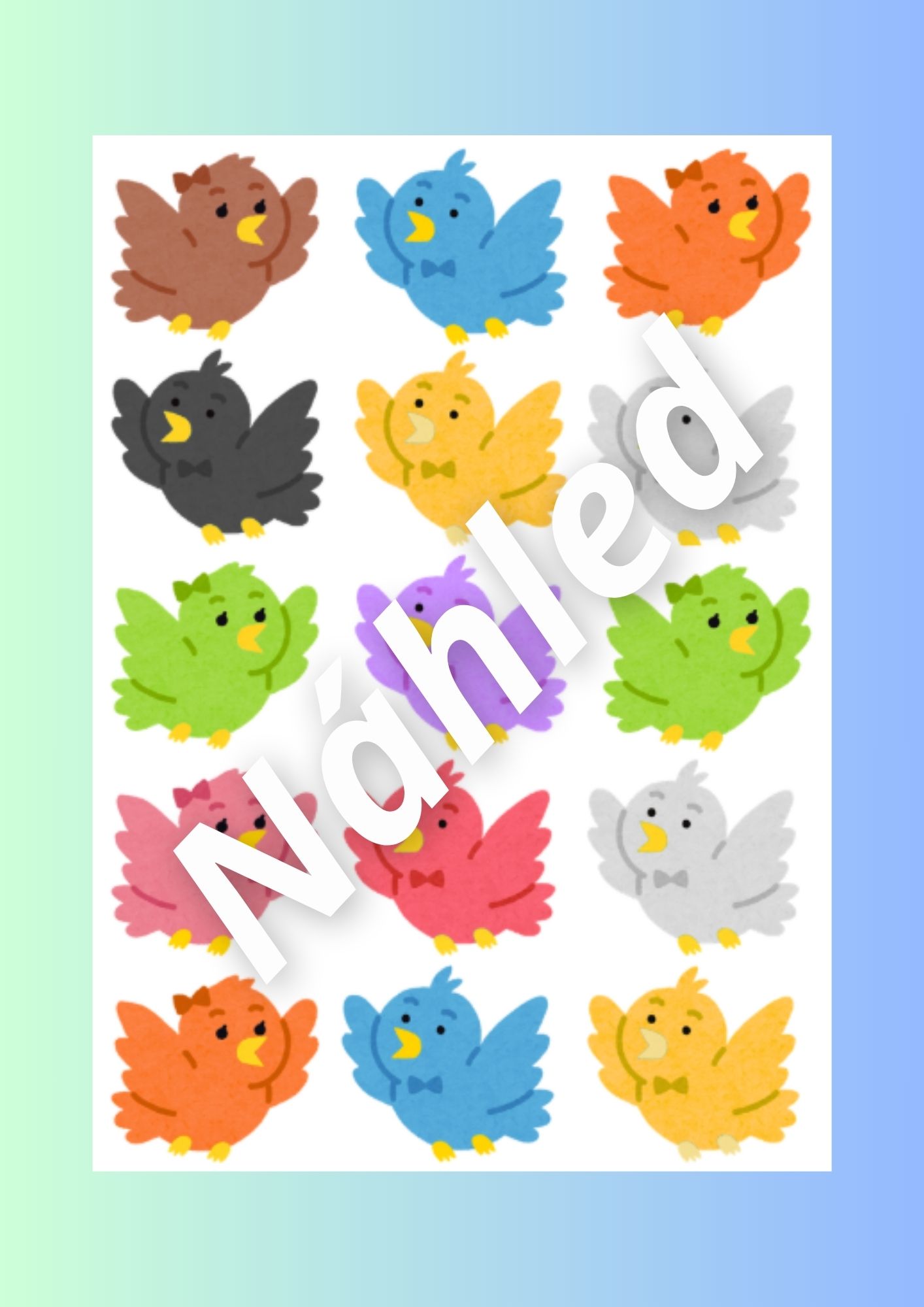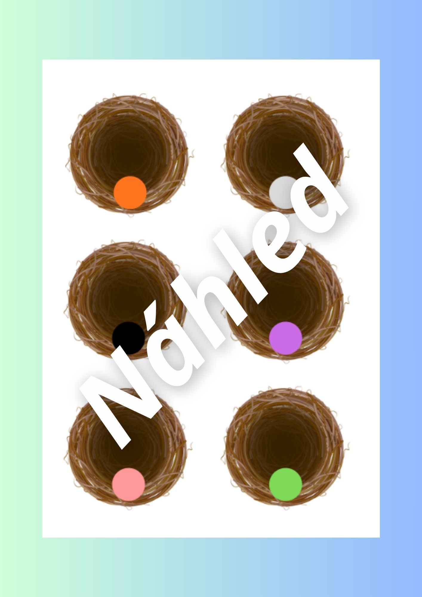 - Barevní ptáčci s vlastními hnízdy - přiřaď ptáčka ke hnízdu se stejnou barvou.