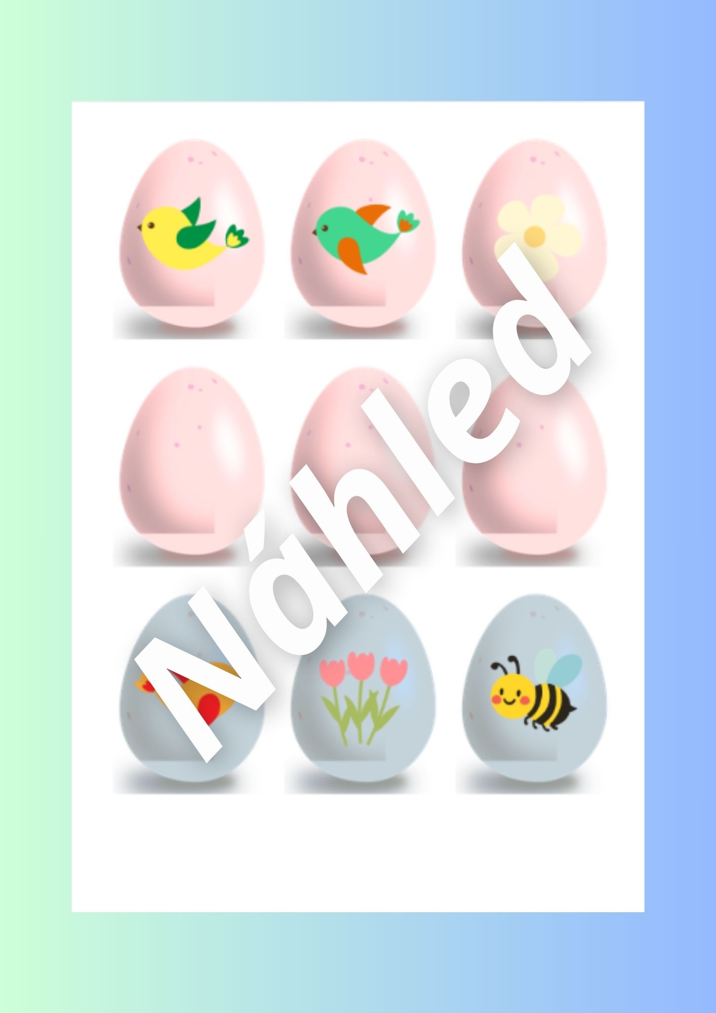 - Prosvítačky + zadání, co hledat - pomocí baterky, objev co se schovává ve vajíčku (vystřihněte vajíčka a lepidlem spojte dvě tak, aby byl obrázek schovaný)