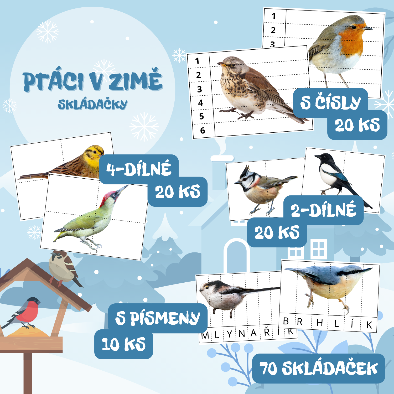 Soubor obsahuje celkem 70 skládaček s obrázky ptáků.