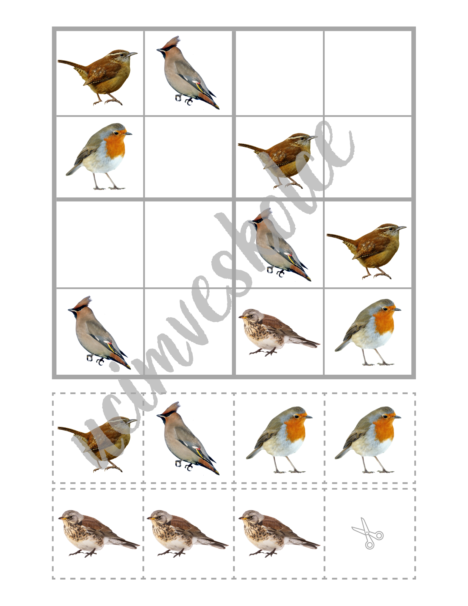 Soubor můžete též využít jako pracovní sešit / pracovní listy / brožuru - děti mohou vystřihnout pouze malé kartičky ze spodní části listu a nalepit je do sudoku tabulky v horní části listu nebo chybějící obrázky dokreslit / domalovat.