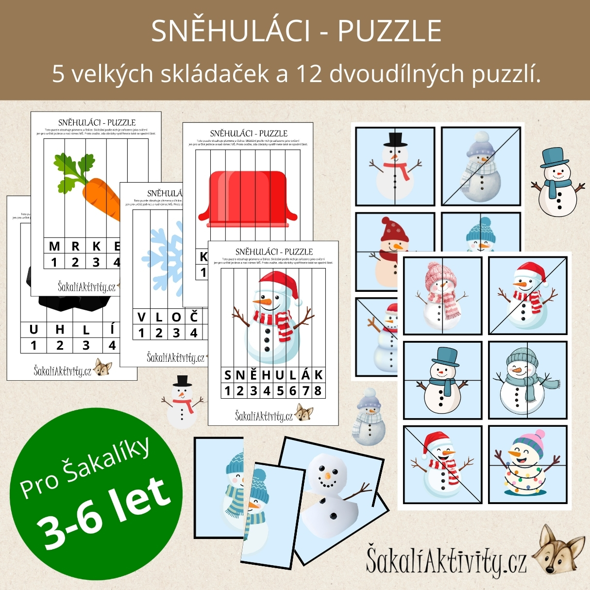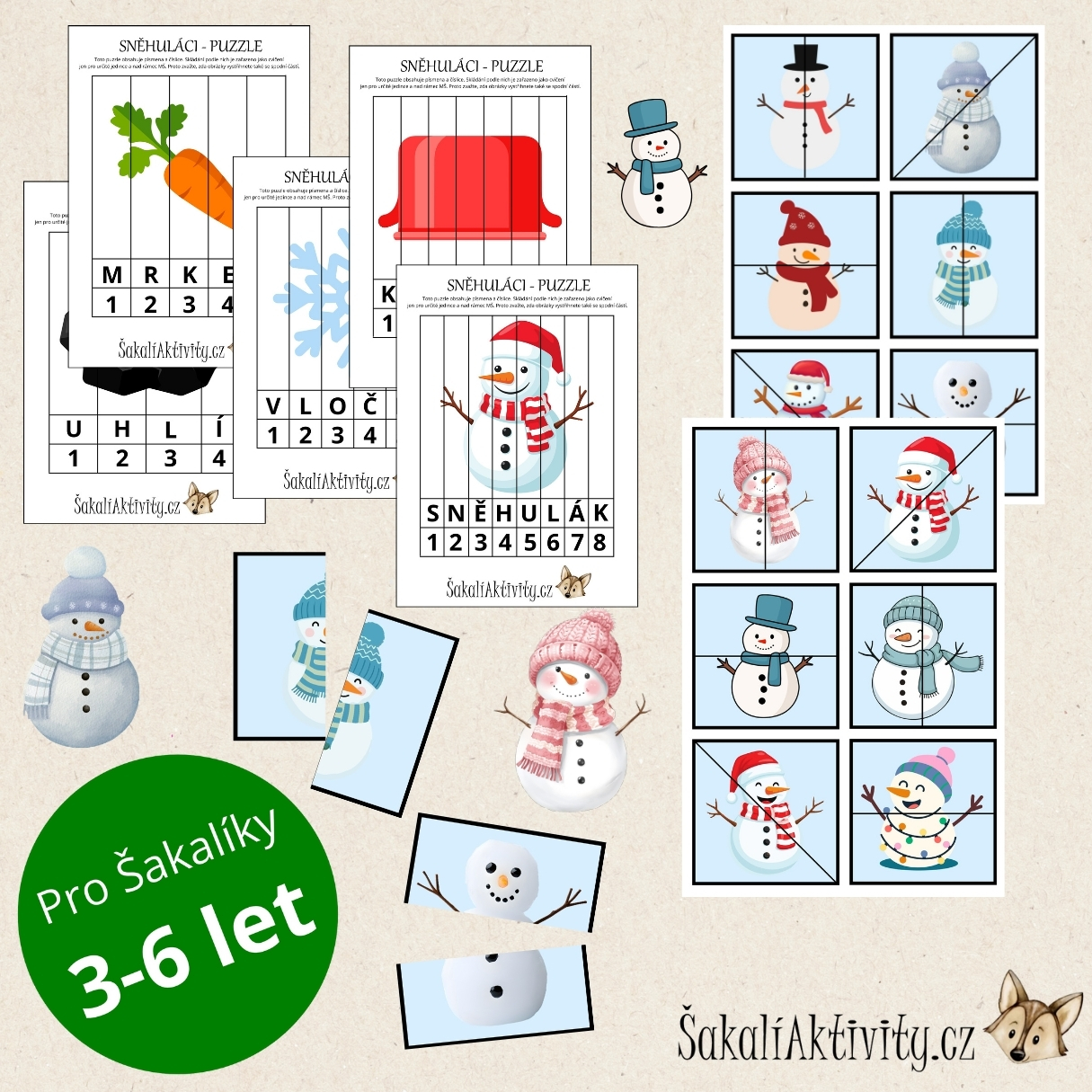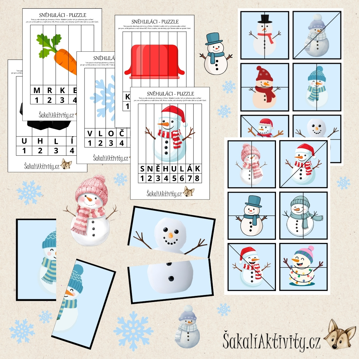 Sněhuláci – puzzle jsou výukovou aktivitou určenou pro mateřské školy, 1. stupeň základních škol, školní družiny i domácí vzdělávání. Děti se prostřednictvím skládání puzzlí seznamují se zimním obdobím, jeho typickými motivy a atmosférou.