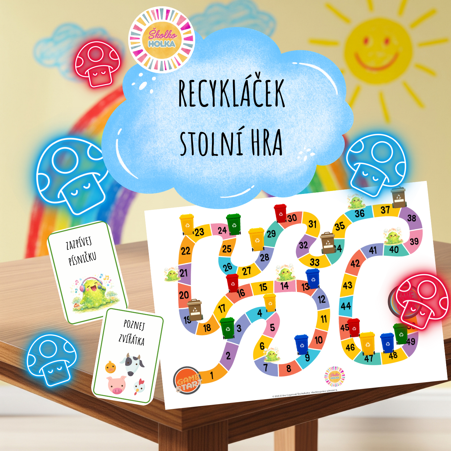 ♻️🎲 Recykláček – stolní hra o třídění odpadu (PDF k vytištění)