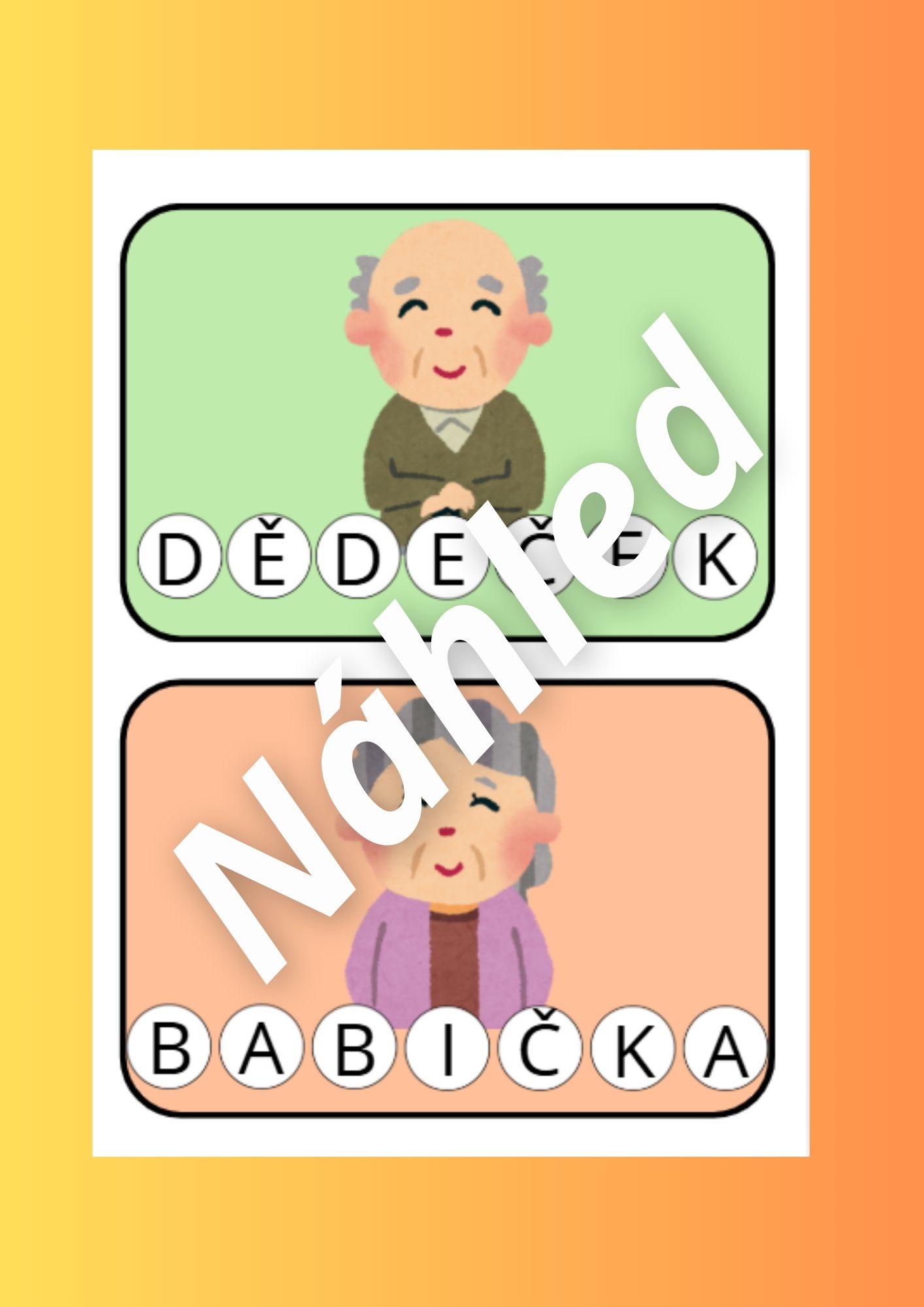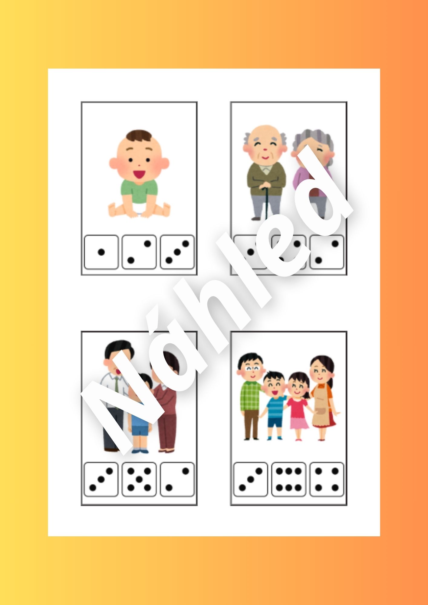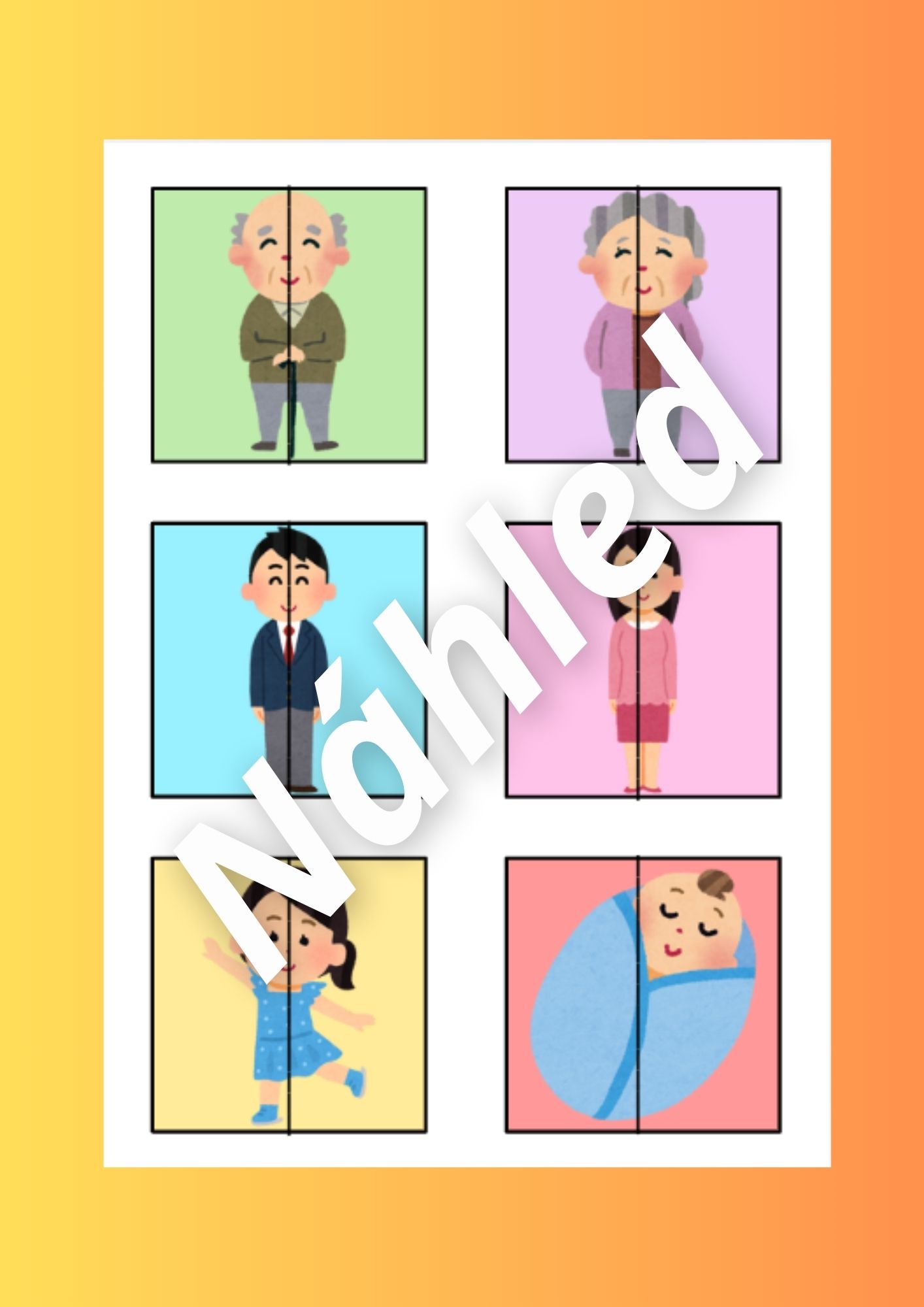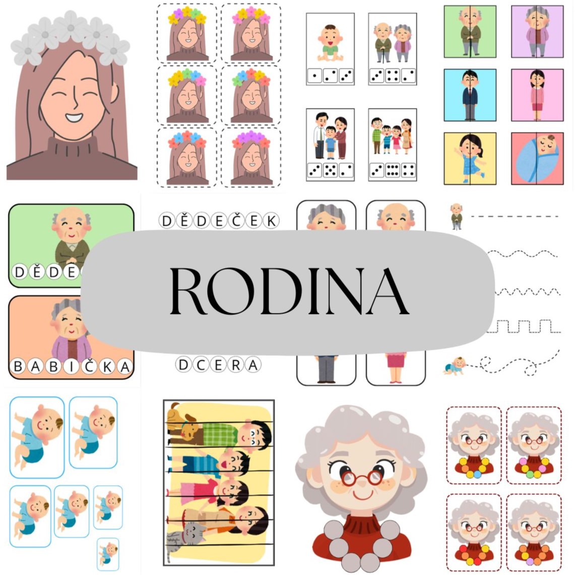 - Kartičky členů rodiny (str. 3-4) - děti si kartičky prohlížejí a pojmenovávají