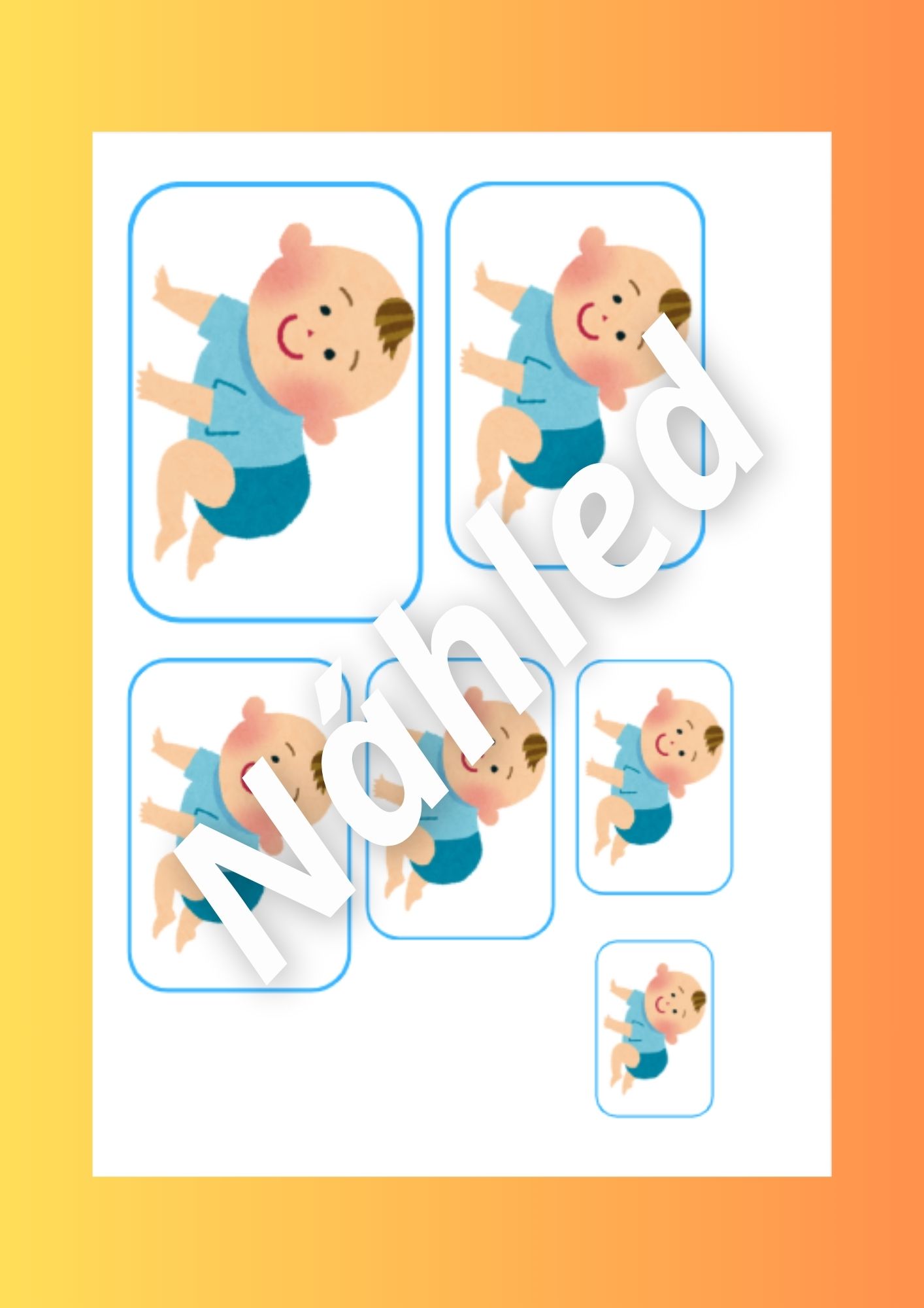- Porovnávání velikostí (str. 27-29) - kartičky rozstříháme a poté je děti skládají od největšího k nejmenšímu