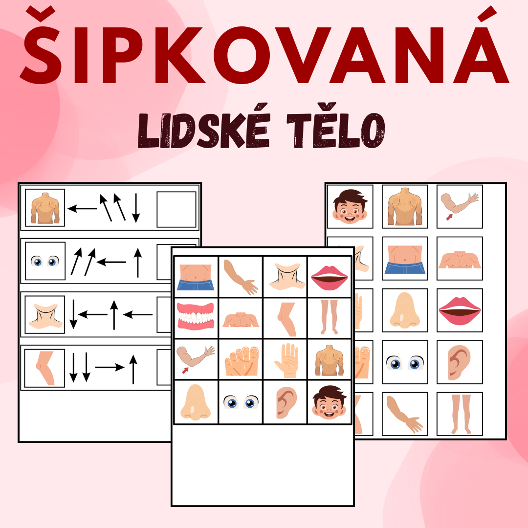 Didaktická aktivita, při které děti podle šipek a směru přiřazují části lidského těla na správné místo.