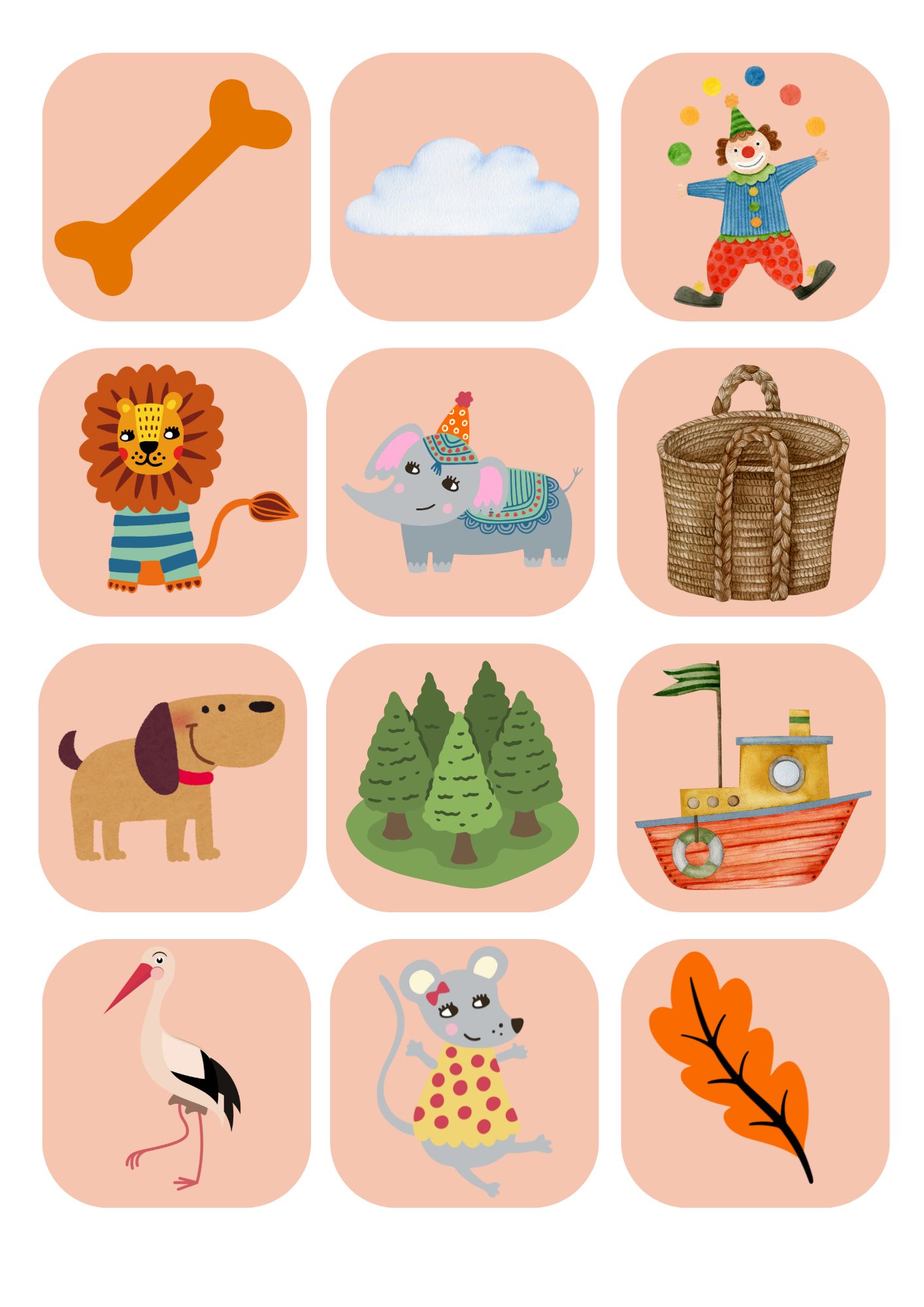 Soubor obsahuje více než 120 obrázků k vytleskání. Děti mají za úkol vytleskat obrázek na kartičce, spočítat slabiky a poté přiřadit ke správné sklenici.