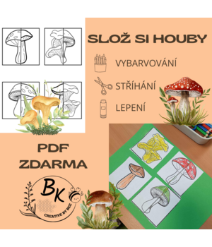 Nejprve si houby vybarví, pak vystřihnou a nakonec hledají správné dvojice poloviček, aby z nich vznikly celé houbičky.