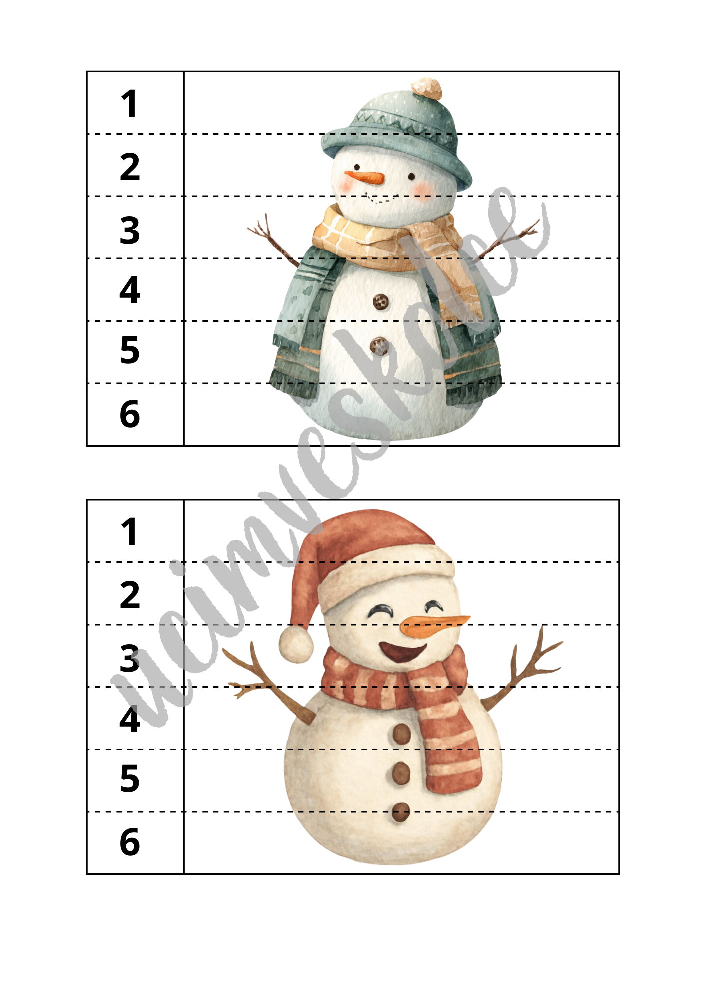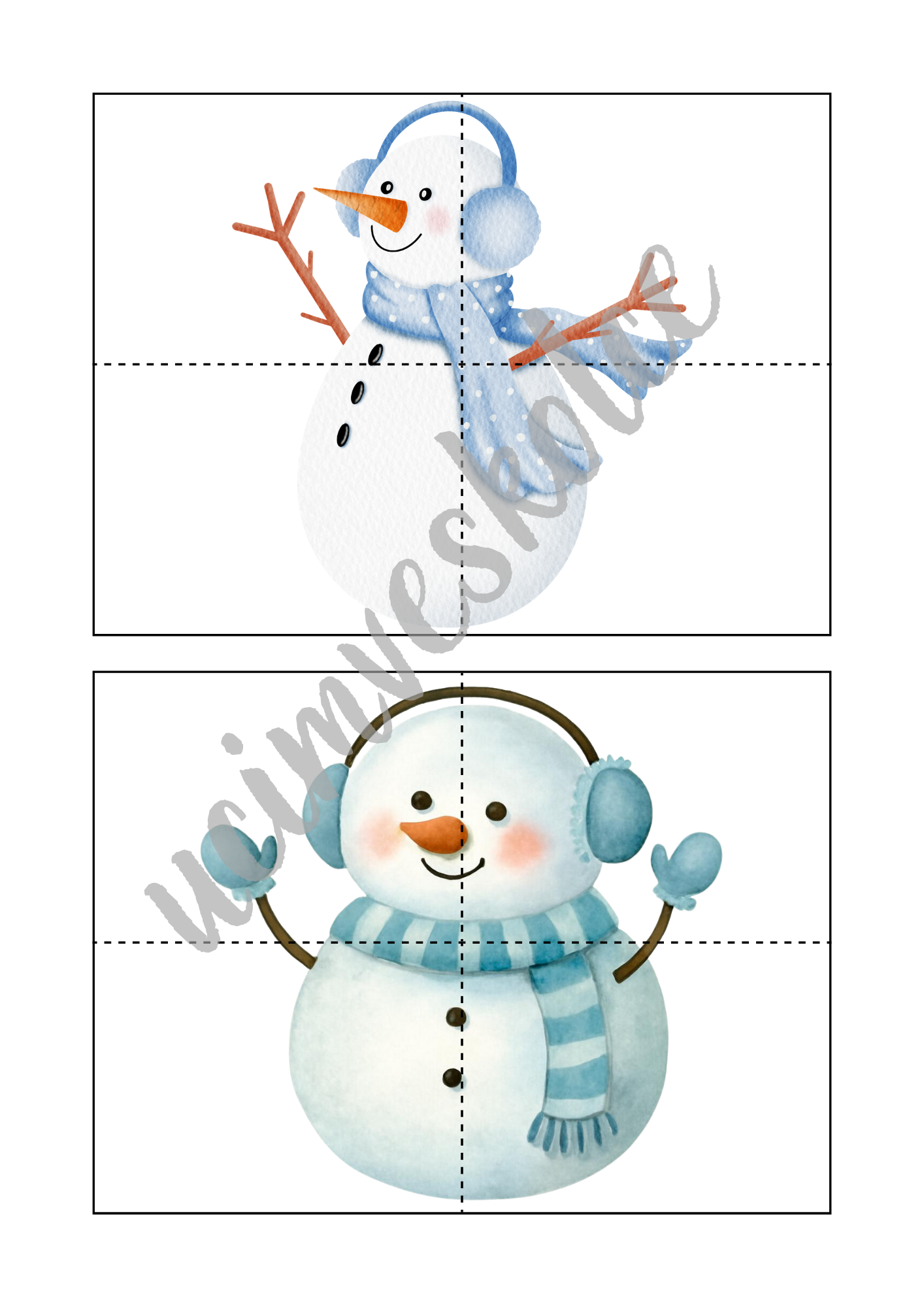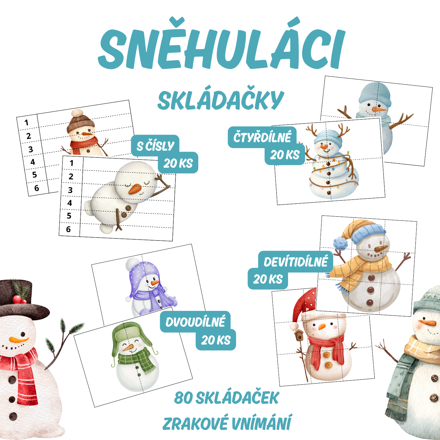 Soubor obsahuje celkem 80 skládaček s obrázky sněhuláků.