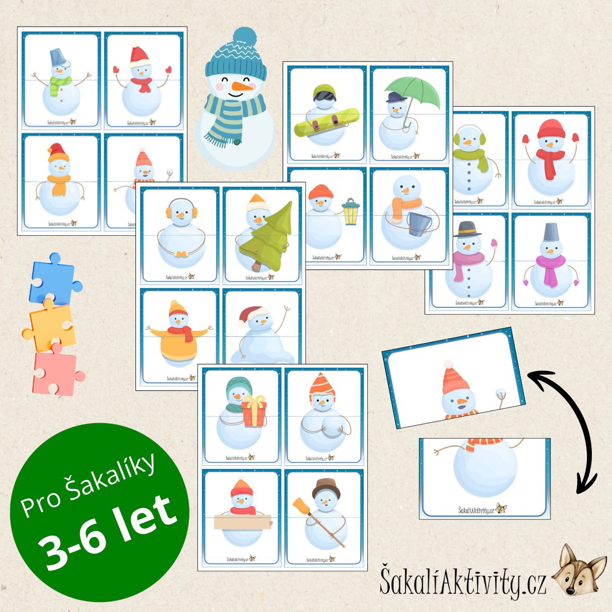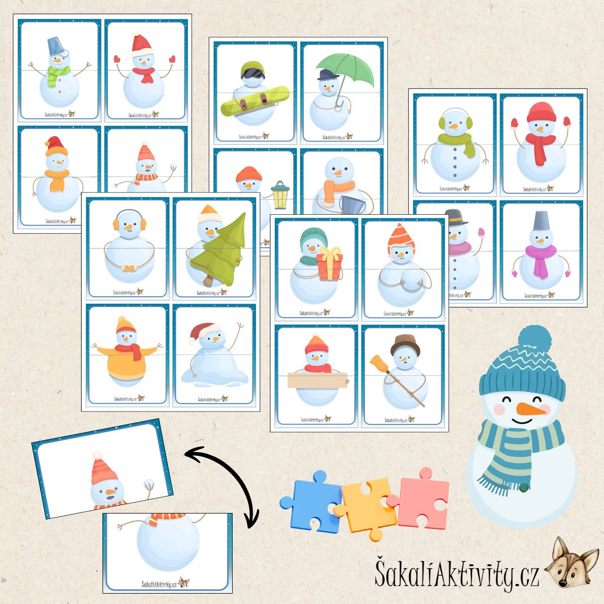 Sněhuláci – skládání obrázků (PDF) jsou výukovým materiálem určeným pro mateřské školy, 1. stupeň ZŠ, školní družiny i domácí vzdělávání. Aktivita seznamuje děti se zimním obdobím prostřednictvím skládání tematických obrázků sněhuláků.
