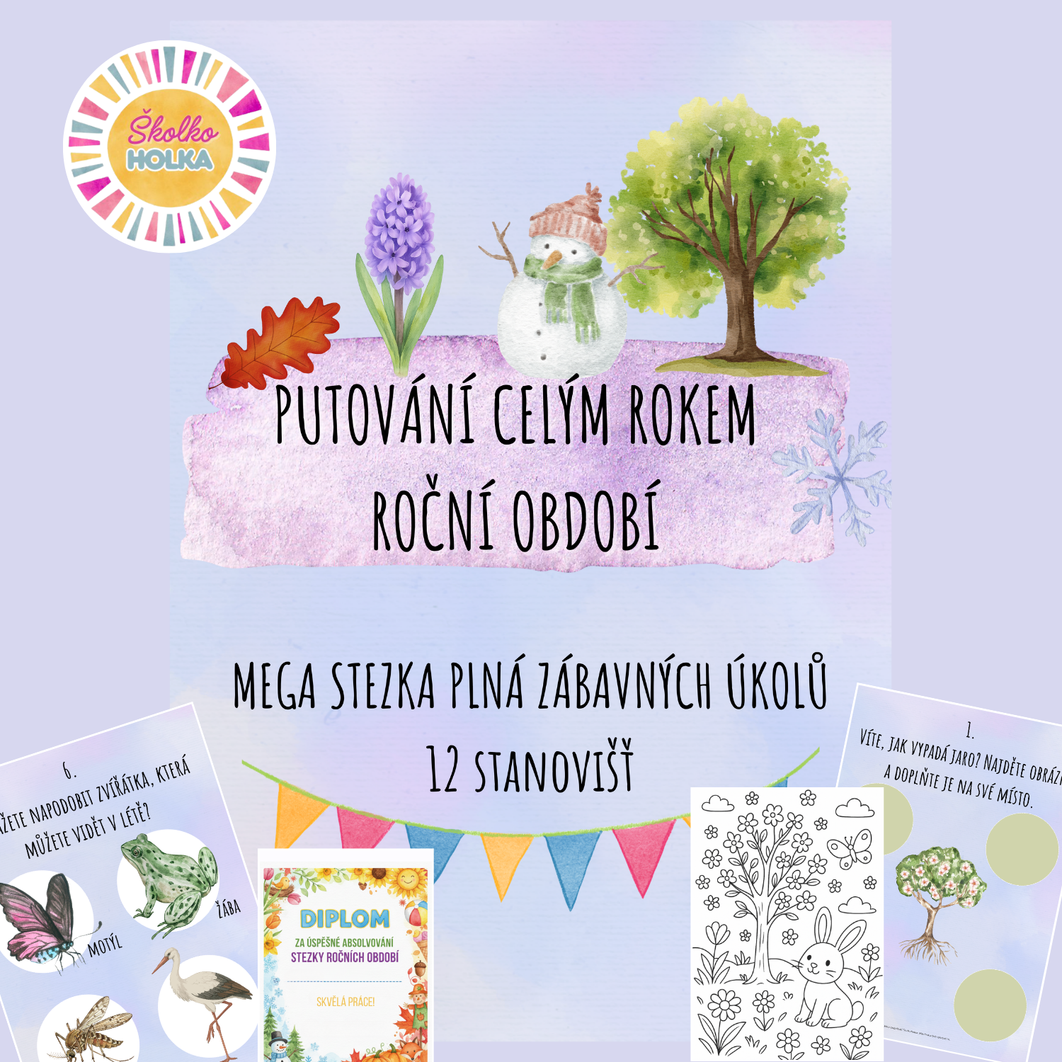 připravila jsem pro vás zábavnou a komplexní stezku, která dětem hravou formou upevní znalosti o ročních obdobích a jejich znacích. Stezka kombinuje pohyb i řešení úkolů, čímž zajišťuje, že děti nebudou jen pasivně odpovídat, ale aktivně se zapojí. Lze ji využít jak venku (na zahradě, v lese), tak uvnitř (ve třídě).