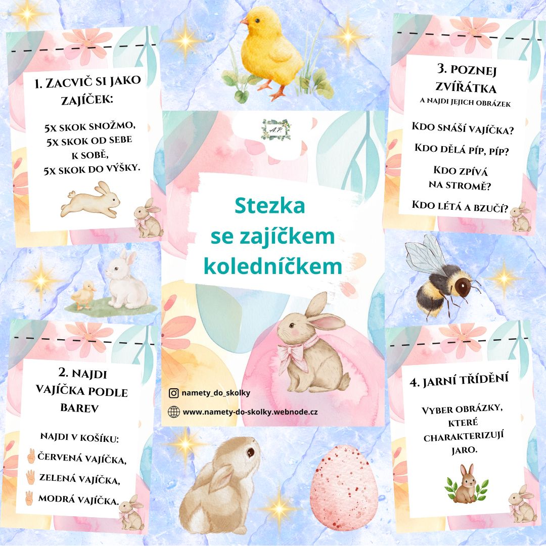 Jedná se o soubor, ve kterém naleznete stezku se zajíčkem Koledníčkem, která obsahuje celkem 10 úkolů: