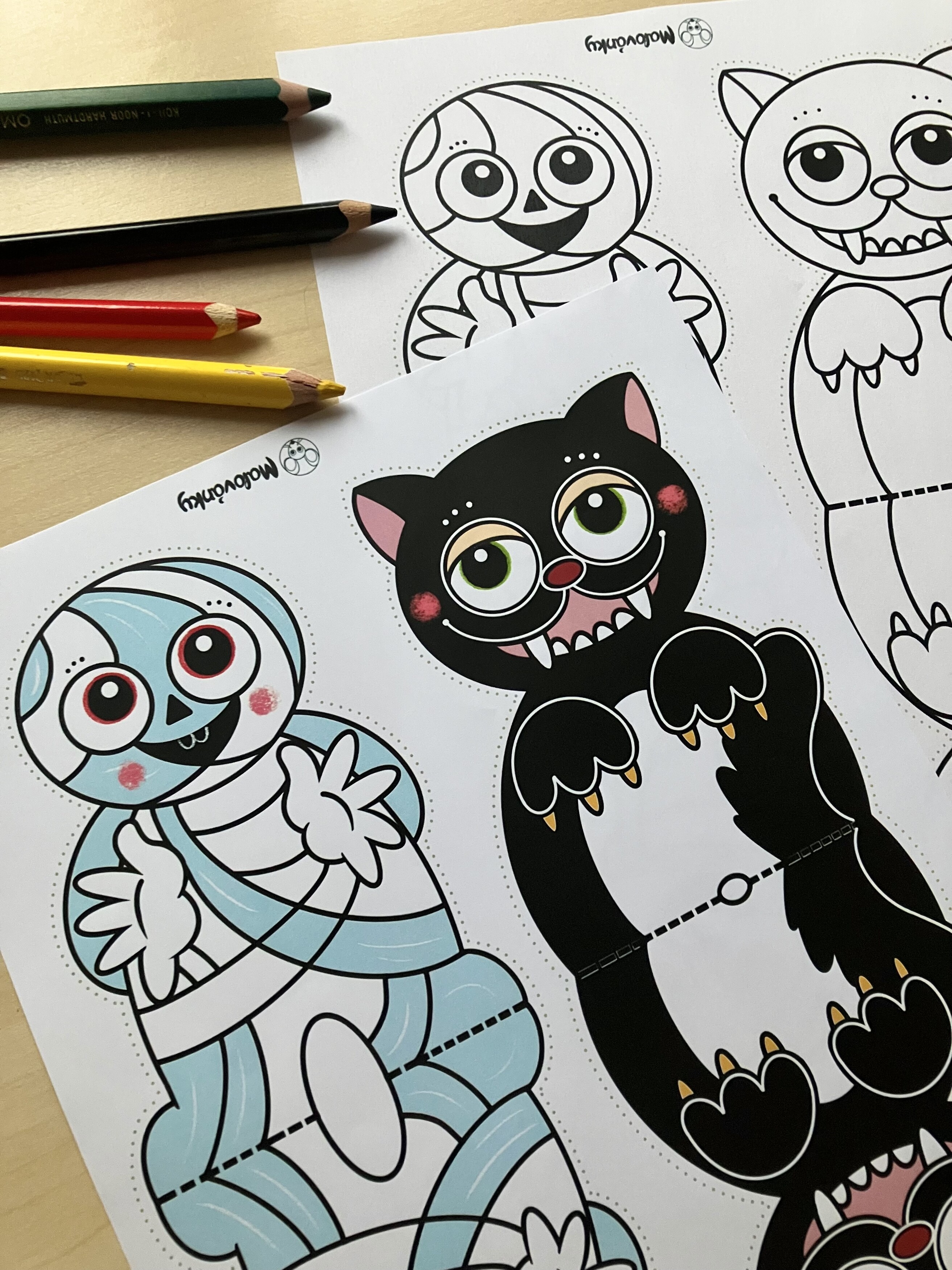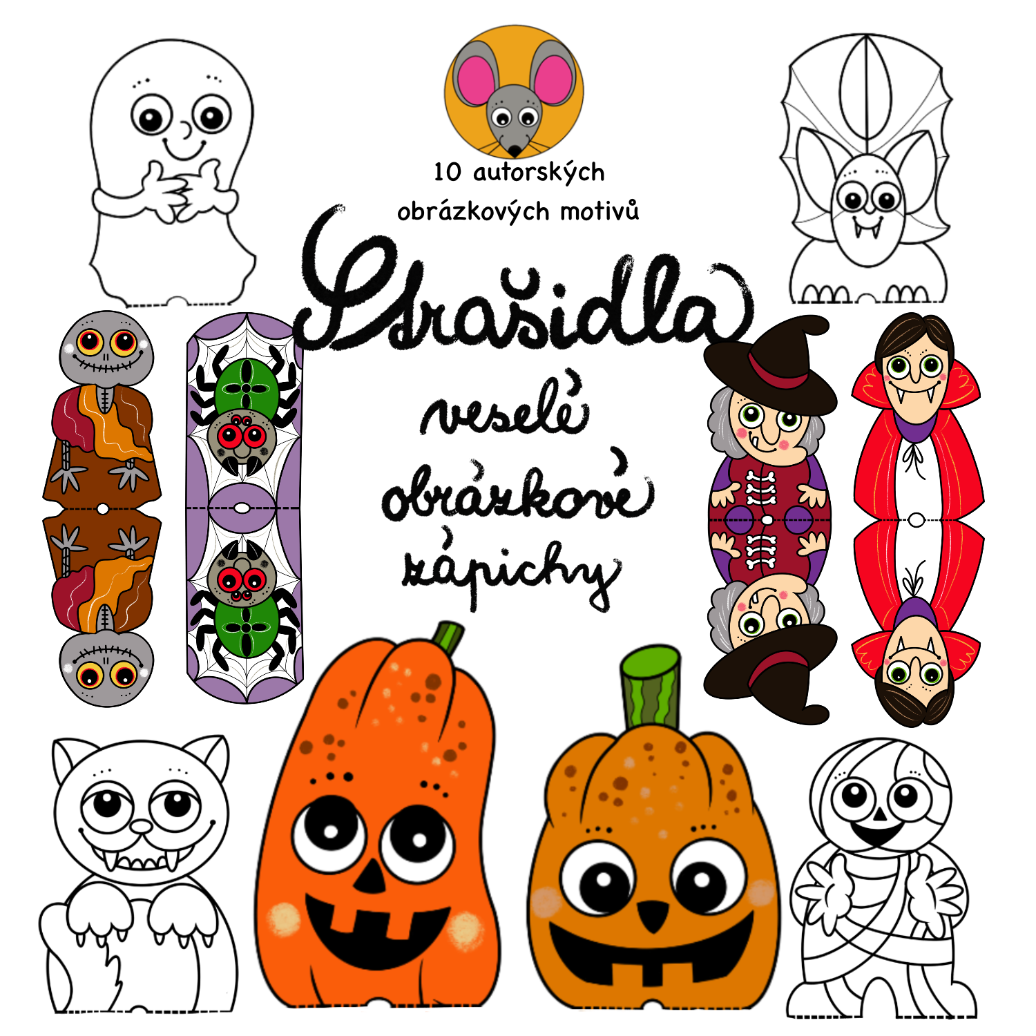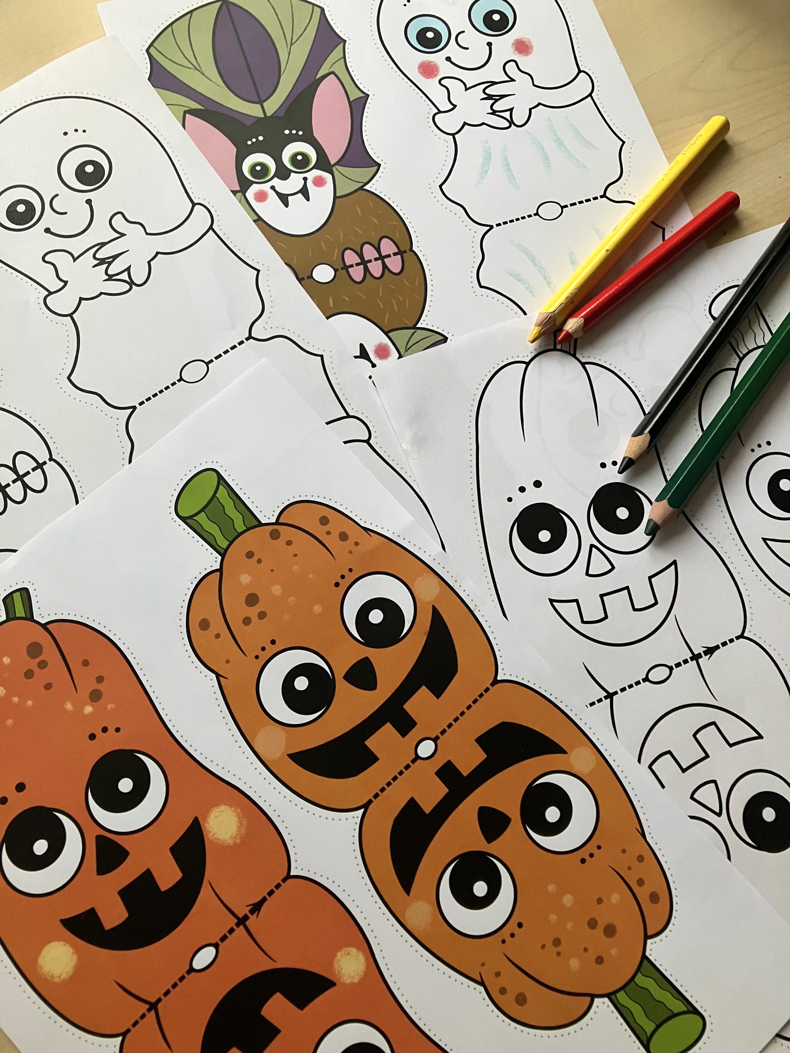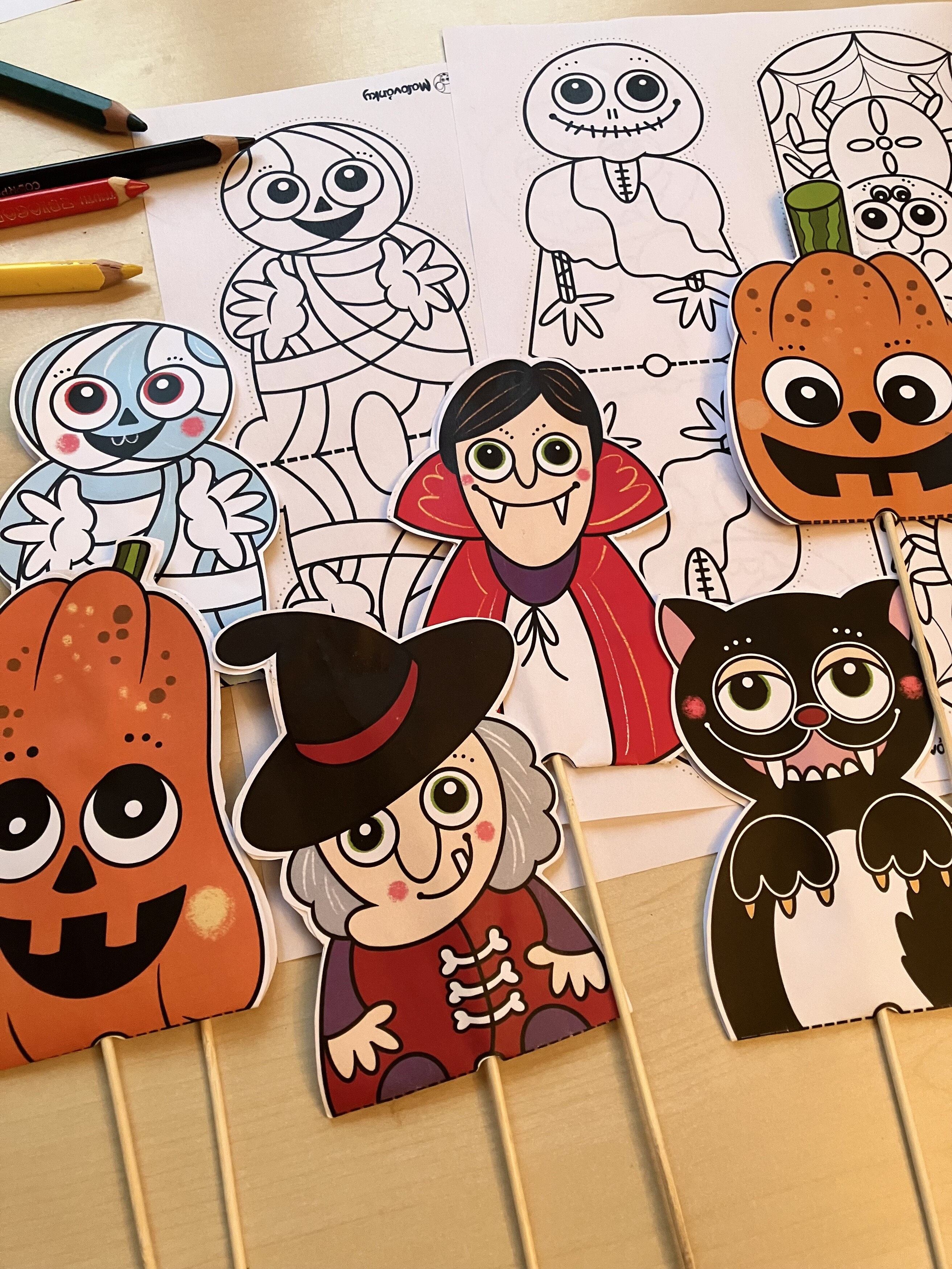 Obrázky jsou vhodné pro předškolní děti nebo nejmladší školáky. Děti si snadno vytvoří pěknou dekoraci k podzimní halloweenské výzdobě.