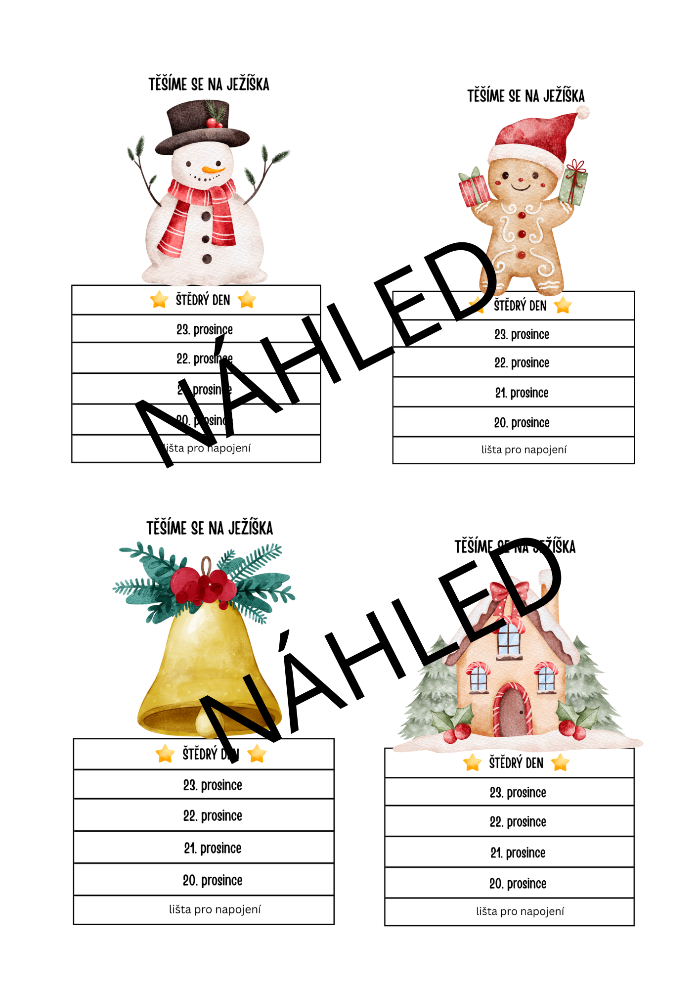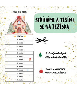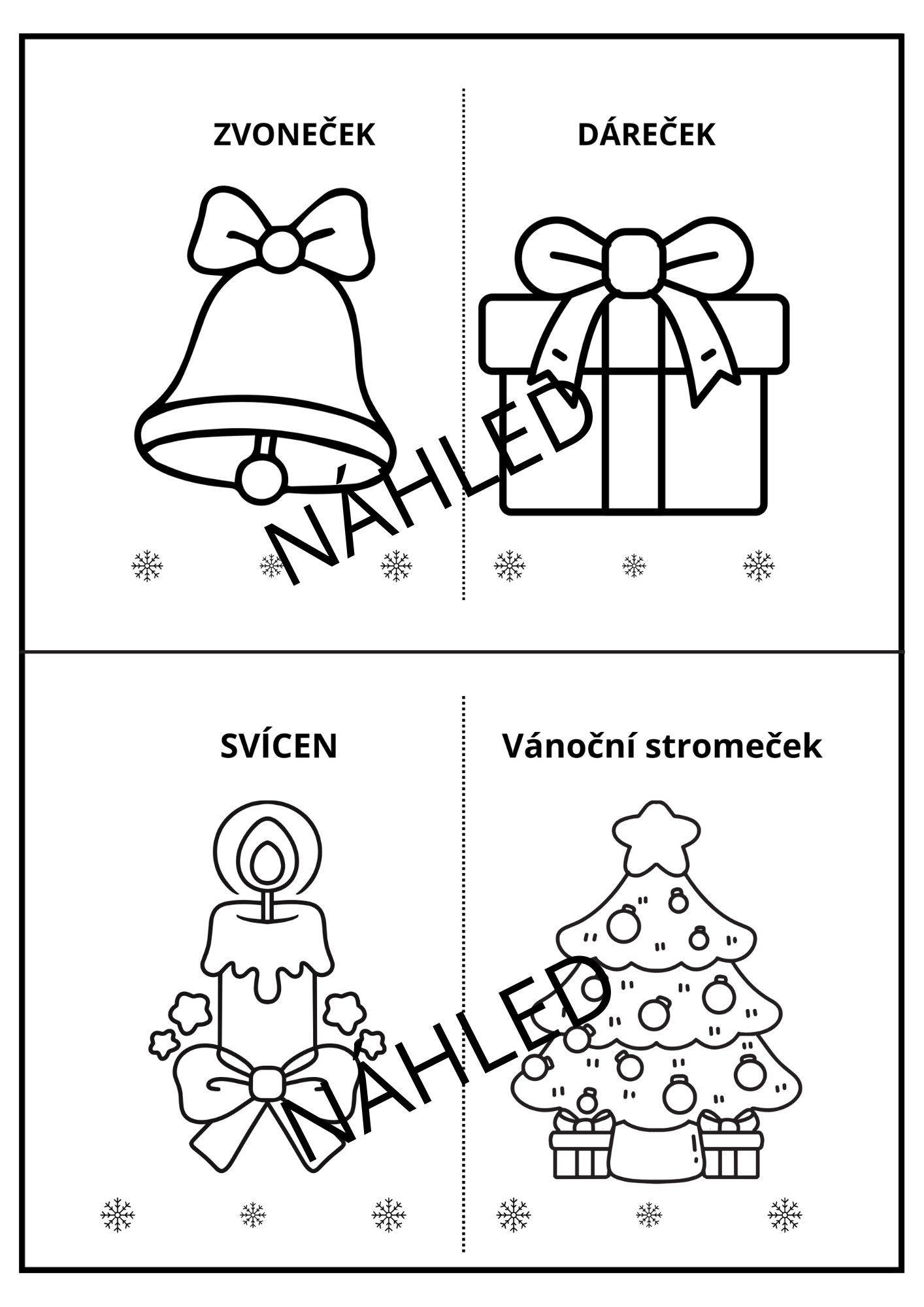 Součástí je také sada 16 vánočních omalovánek / demonstračních karet s tradičními symboly Vánoc – vhodné pro výtvarné činnosti, tematické koutky nebo jako názorné kartičky.