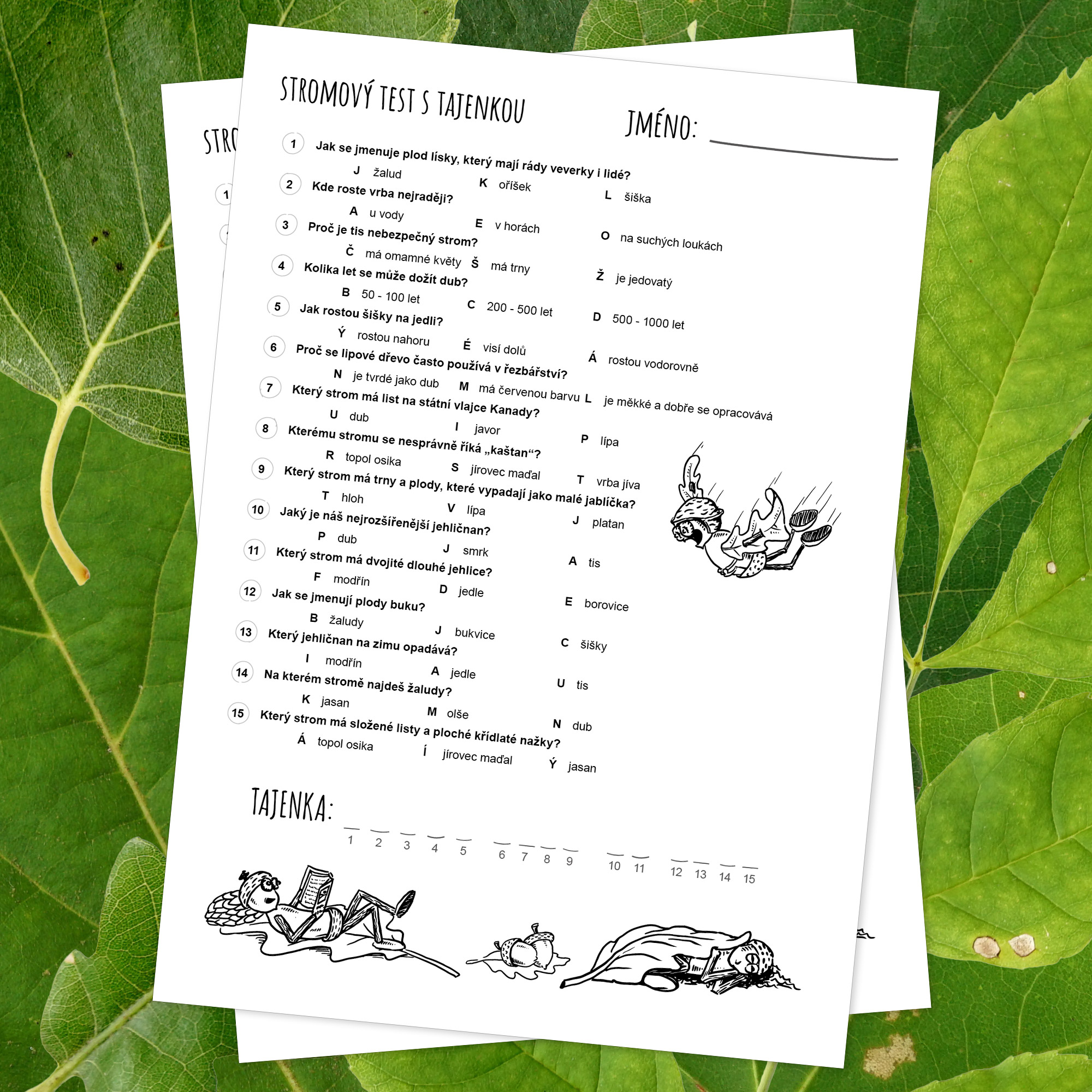 - Pracovní list - kvíz: Obsahuje 15 otázek, které vychází z textů na kartách, malou dubánčí omalovánku a tajenku, která se objeví po správném vyřešení všech úkolů.