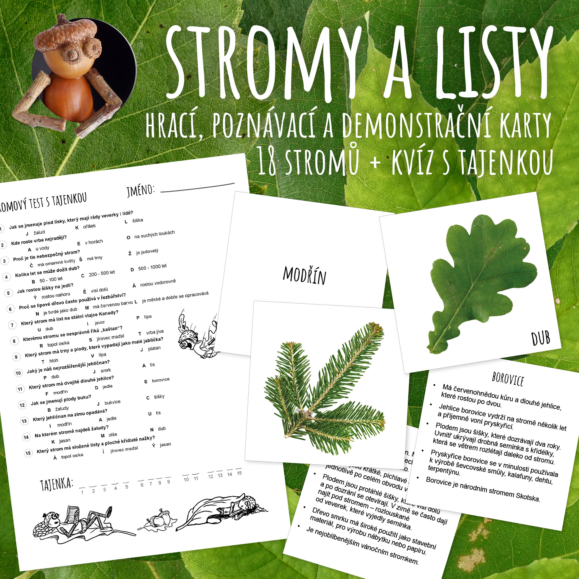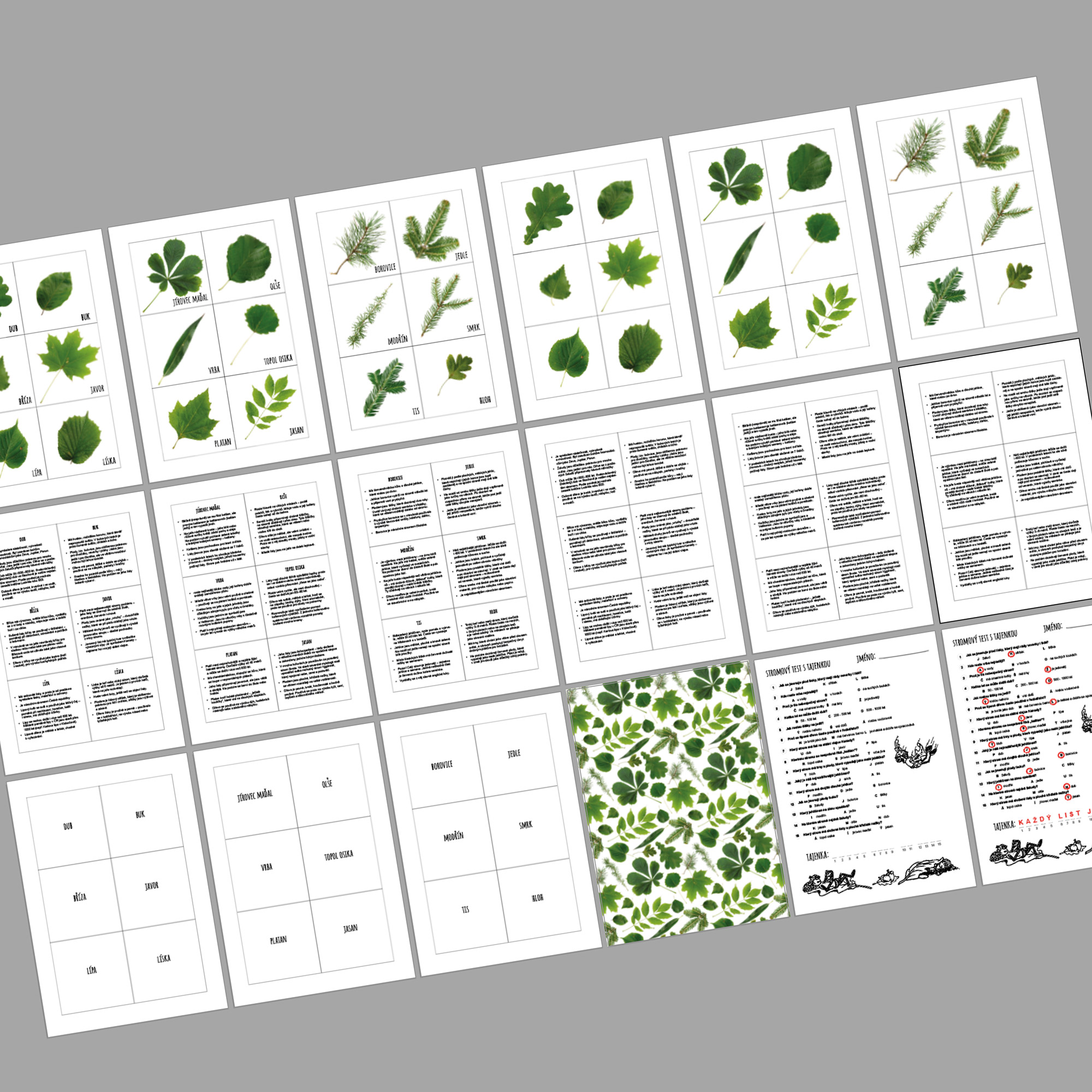 - Sada karet jen s názvy stromů: Pro rychlé spojování se správnou fotkou nebo kartou zajímavostí.